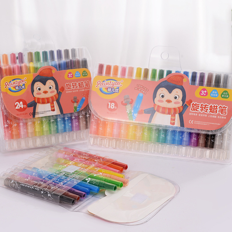 儿童绘画旋转蜡笔绘儿优幼儿园学生涂鸦绘画蜡笔不沾手可水洗蜡笔