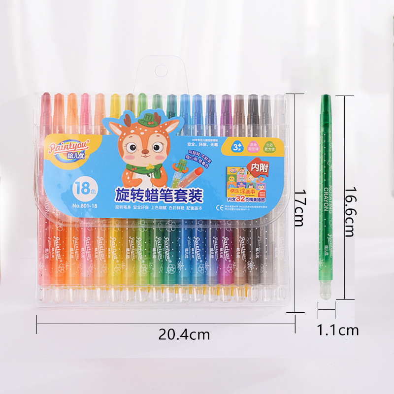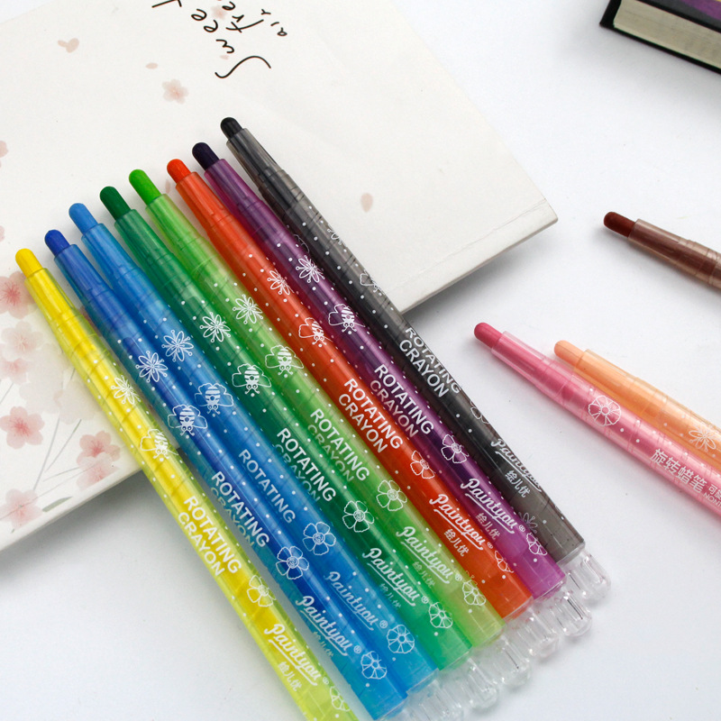 绘儿优旋转蜡笔儿童美术绘画不沾手蜡笔幼儿园机构涂鸦塑料蜡笔