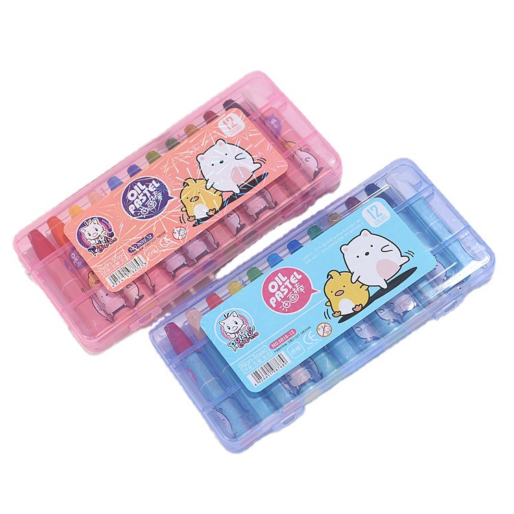 土豆猫油画棒12 24 36塑盒蜡笔 炫彩棒 重彩油画棒 外贸定制 OEM