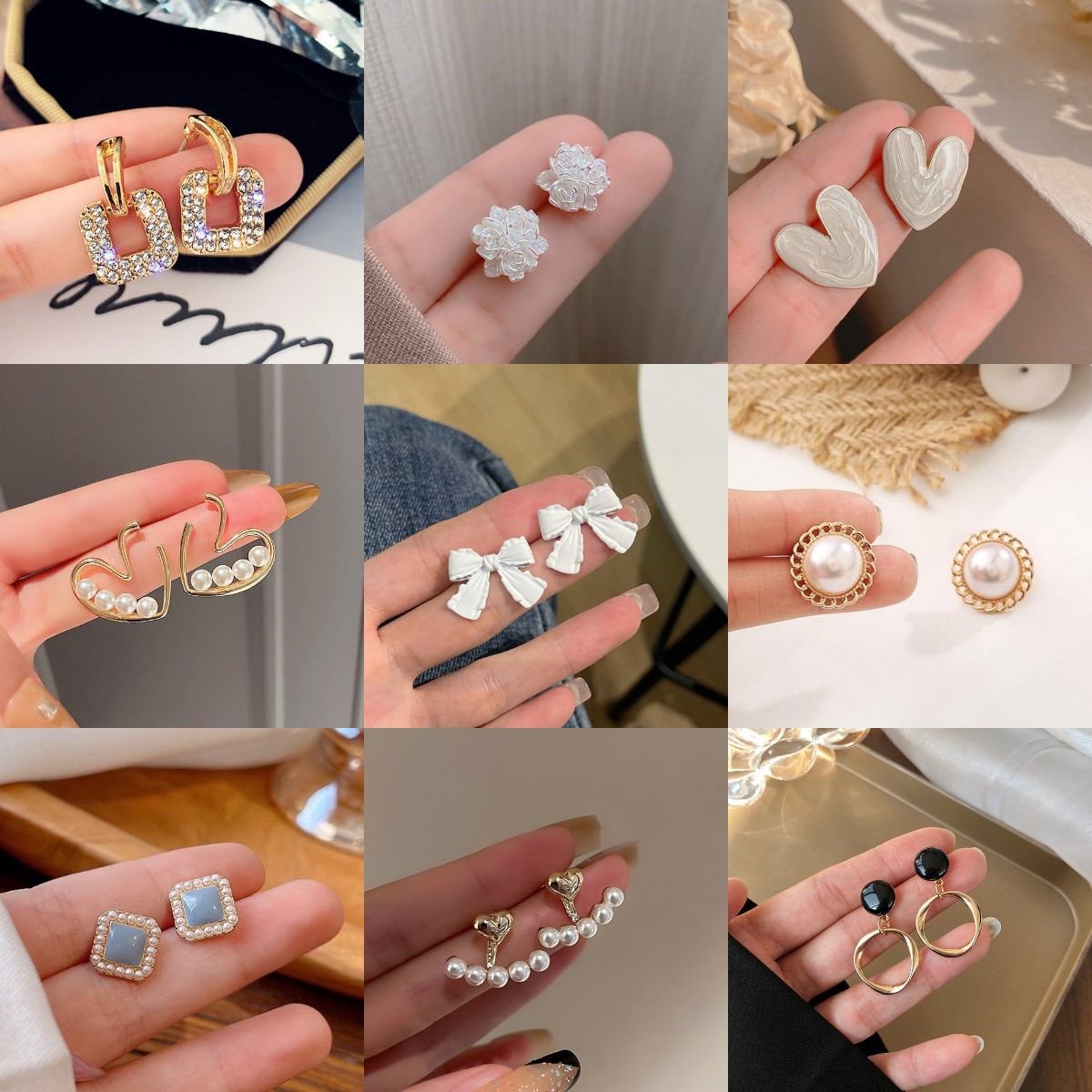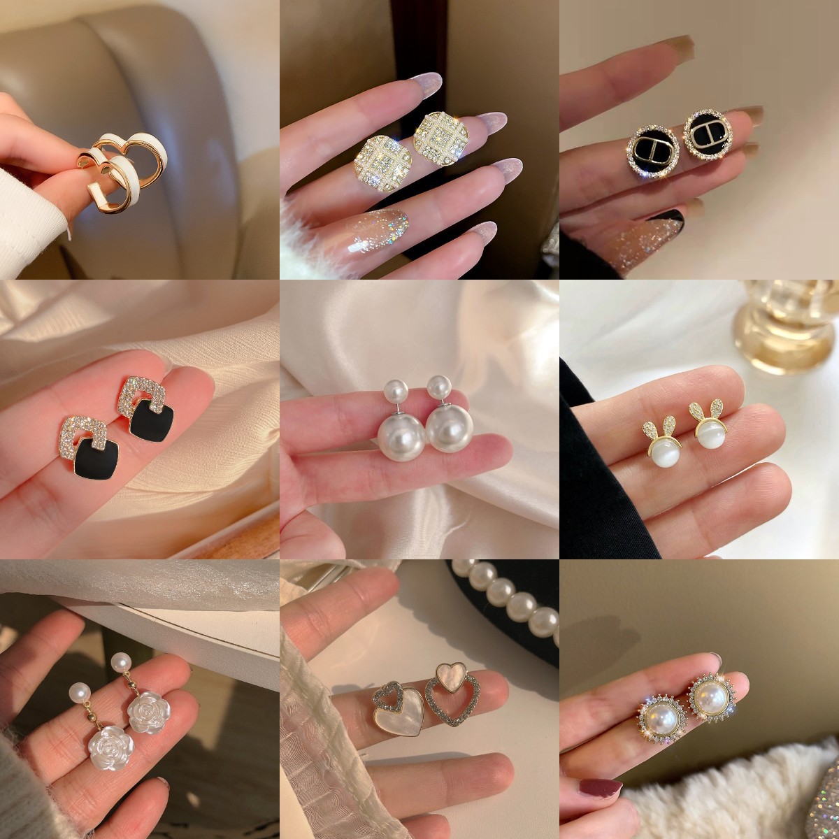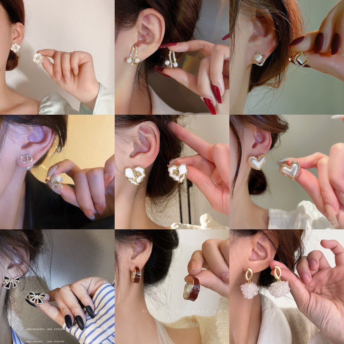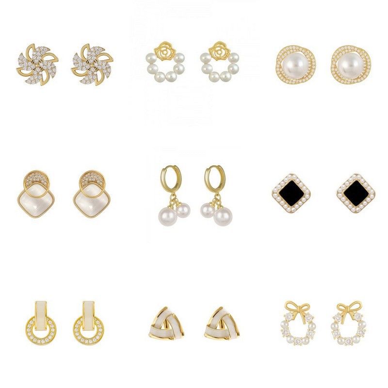 S925银针时尚花朵饰品珍珠耳钉复古耳环高级感简约银针耳饰批发女