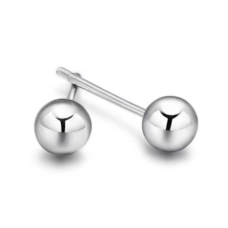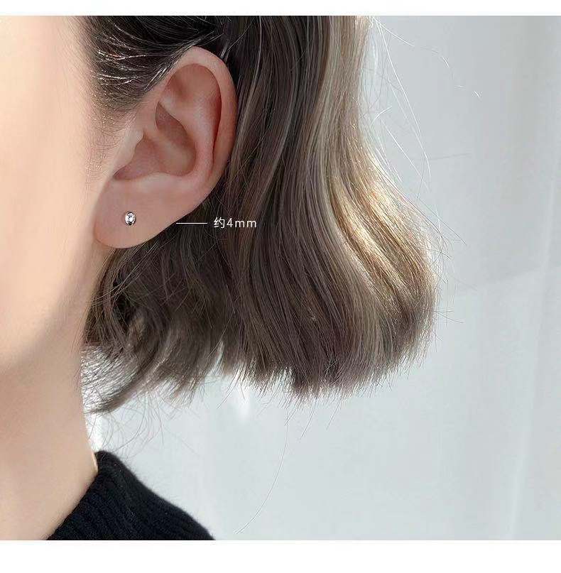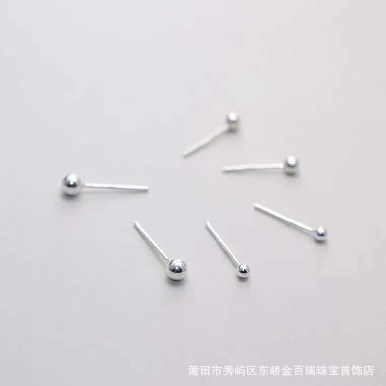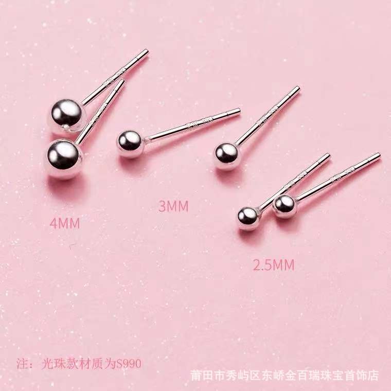 正品S999纯银光珠银S990耳钉女耳环新款潮简约小巧耳骨棍耳洞爆款