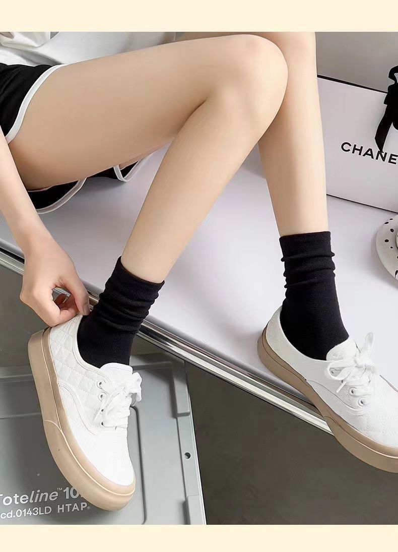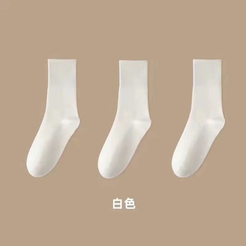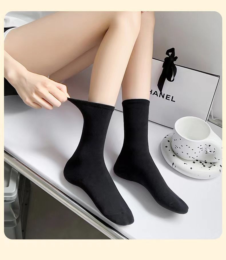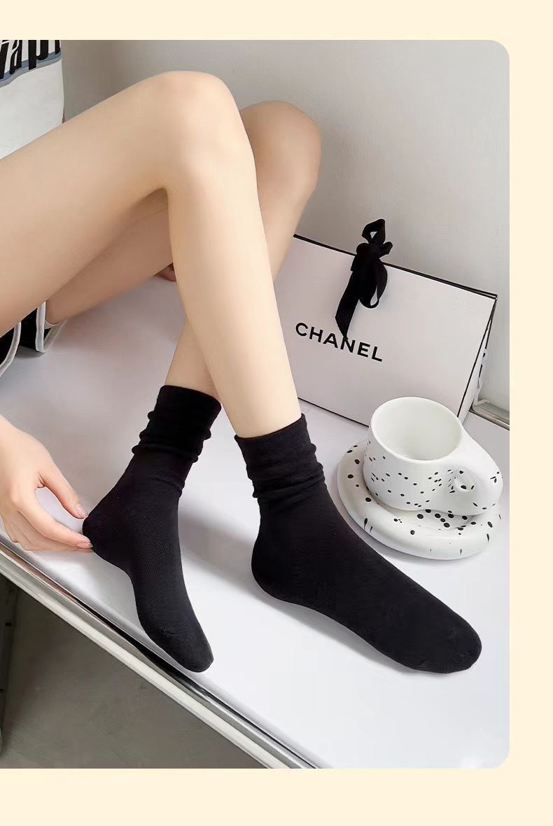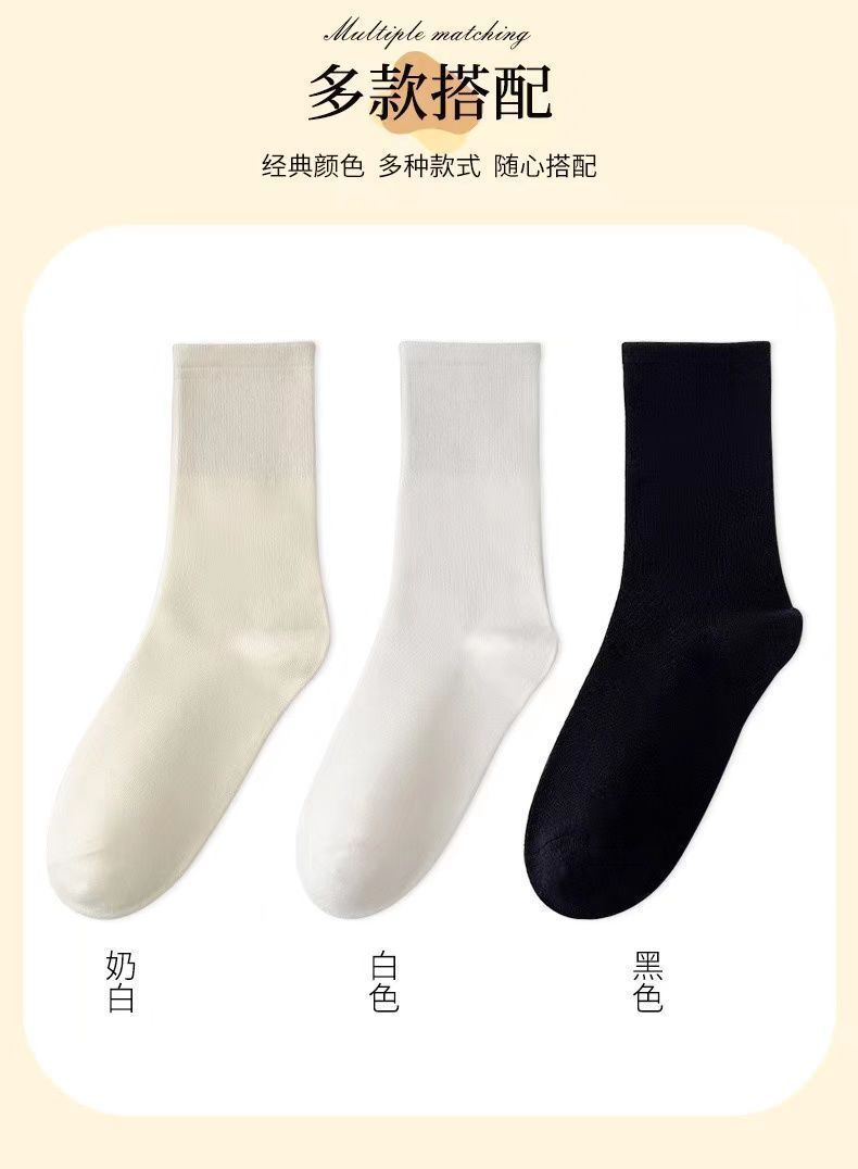 白色袜子女中筒袜无骨袜月子袜纯色堆堆袜日系中筒冰冰袜可一件代