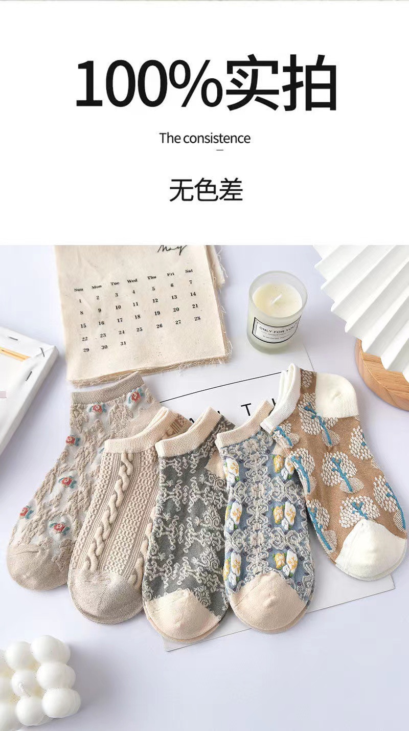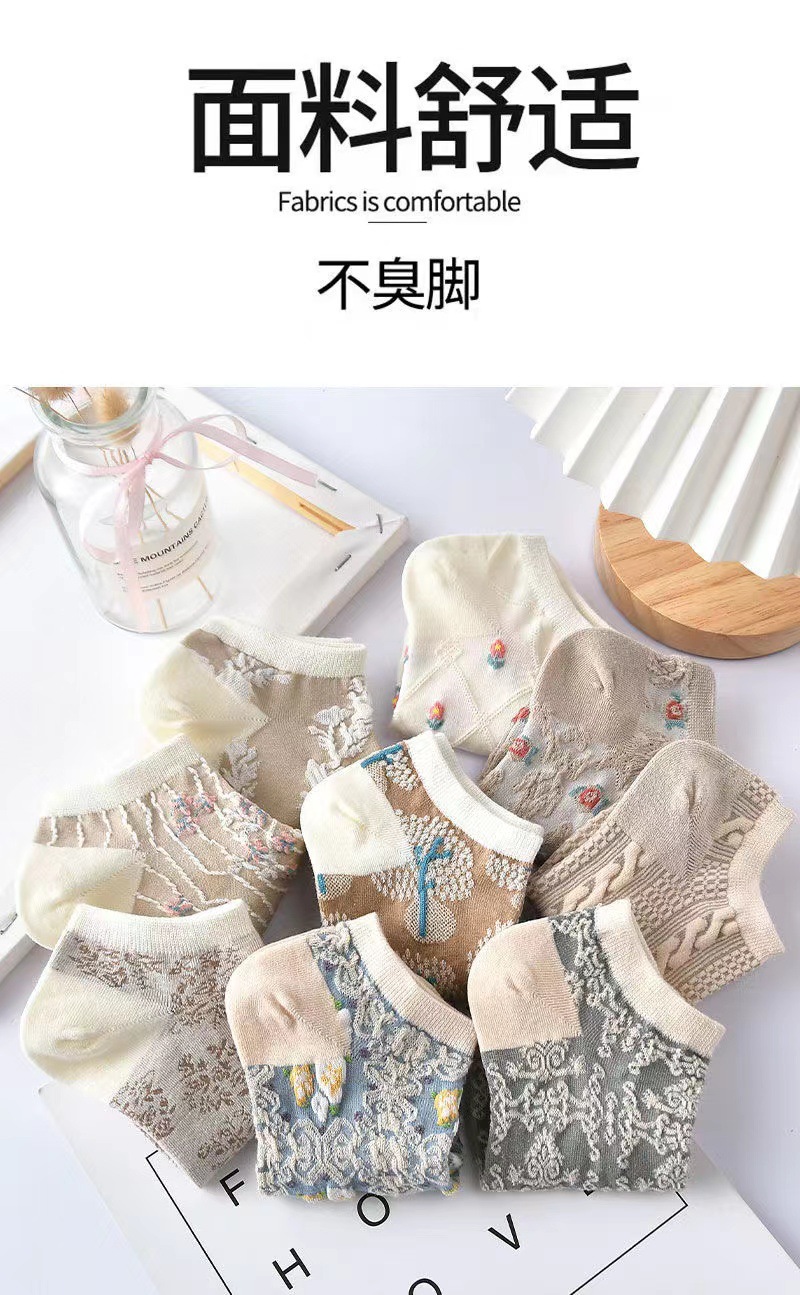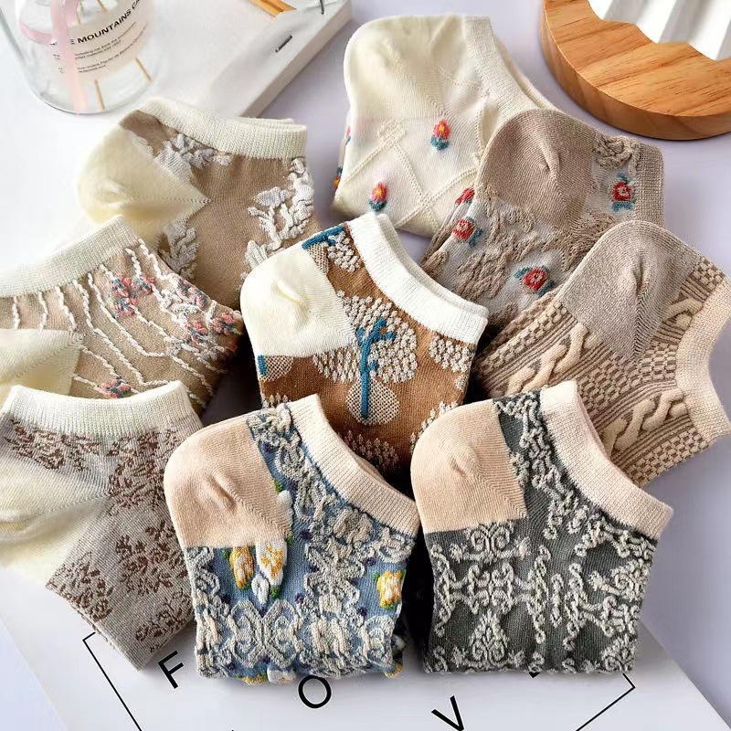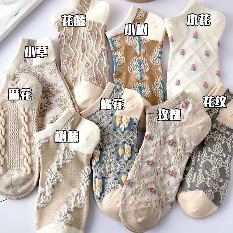 夏天袜子女船袜浅口秋冬厚款透气ins潮日系复古碎花低帮学生短袜