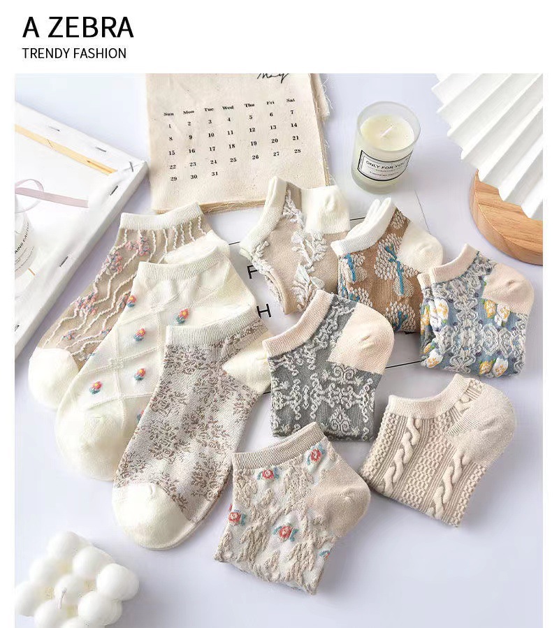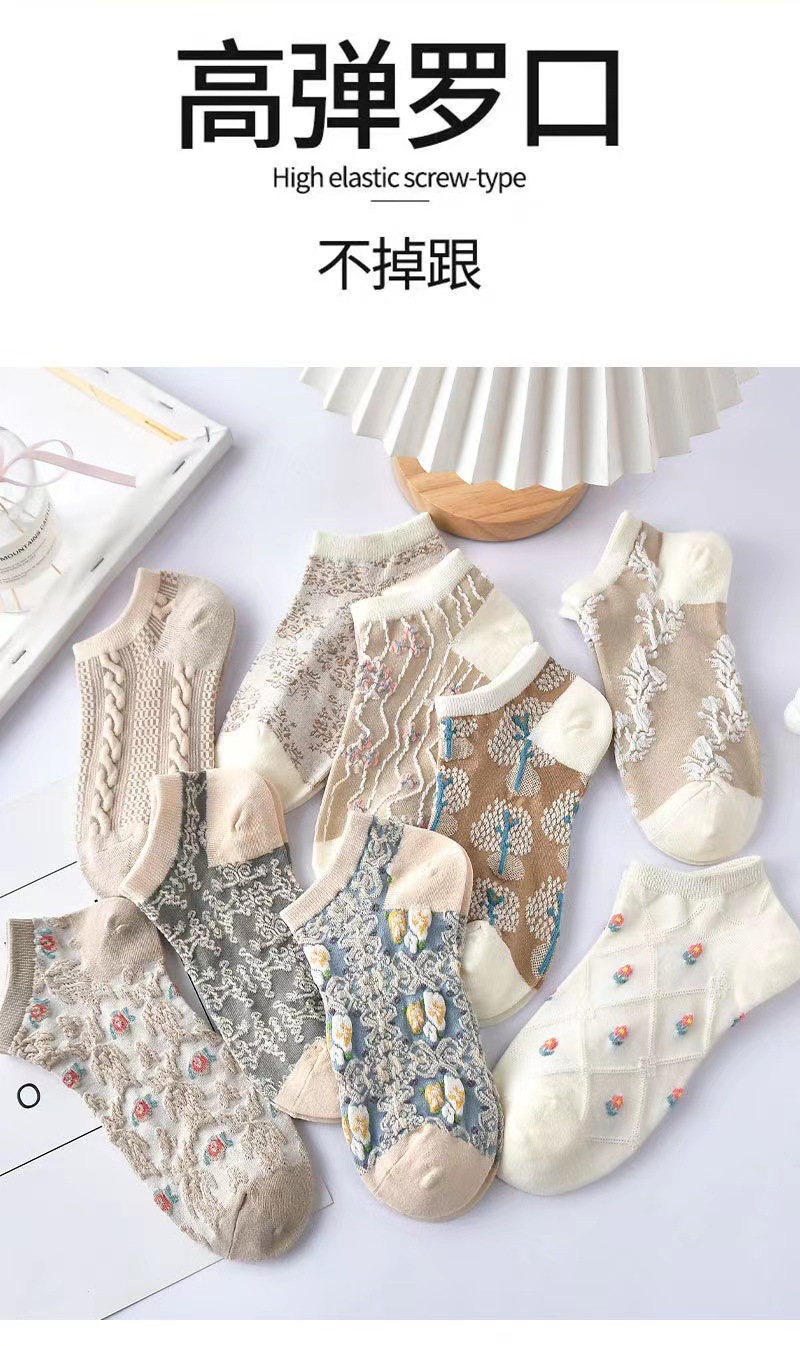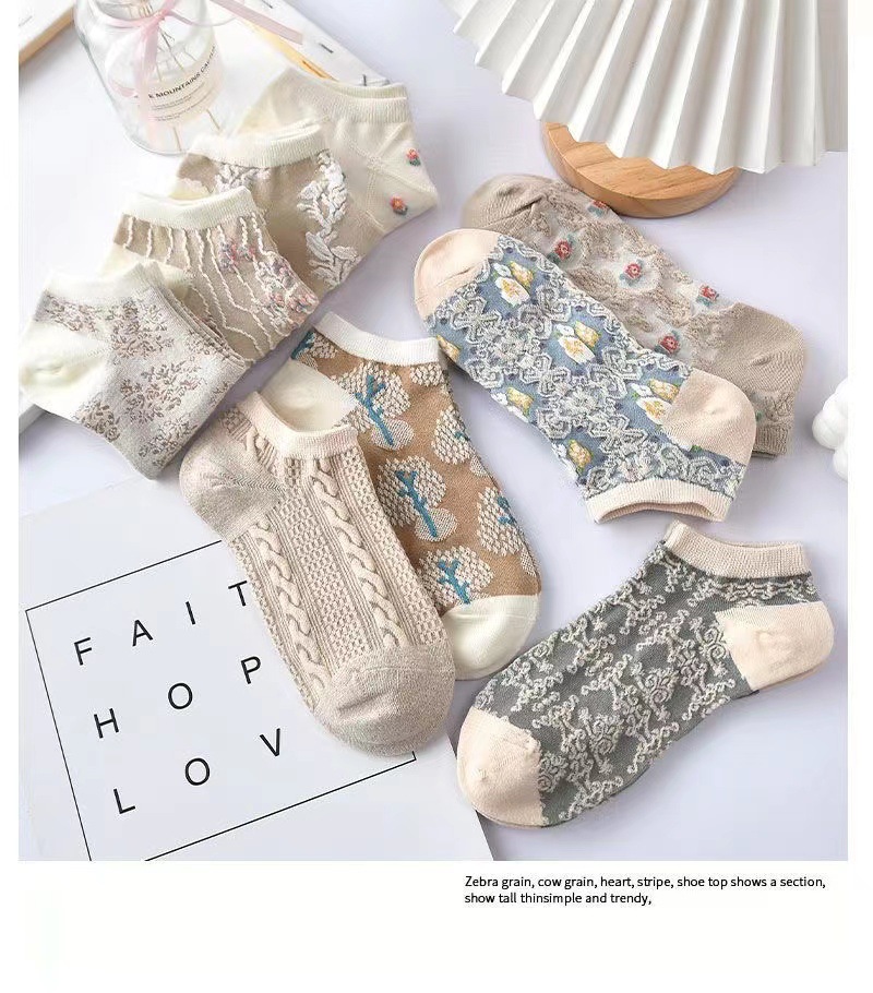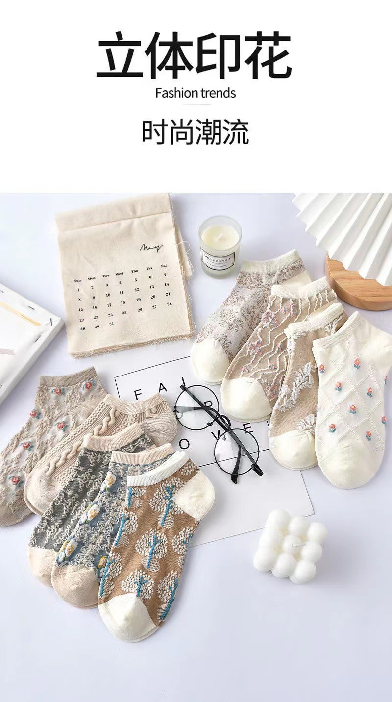 夏天袜子女船袜浅口秋冬厚款透气ins潮日系复古碎花低帮学生短袜