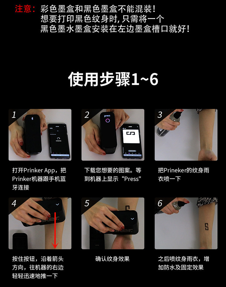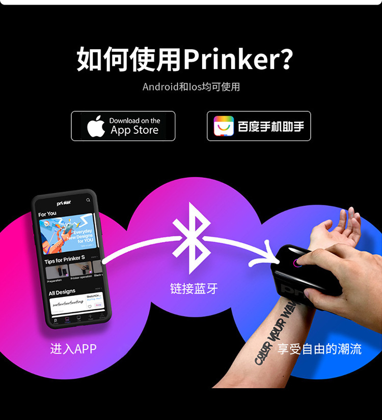 纹身打印机二代手持蓝牙油墨打印机便携喷码机夜市摆摊