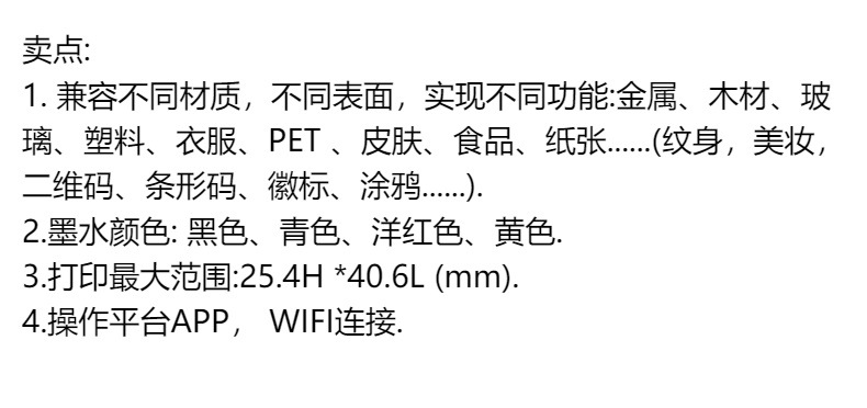 皮肤纹身打印机迷你便携面包塑料金属布料贺卡Logo食品喷墨打印机