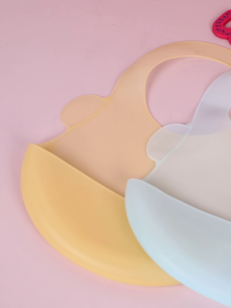 婴儿围兜透明食品级硅胶不粘灰易清理儿童围嘴可调节果冻款