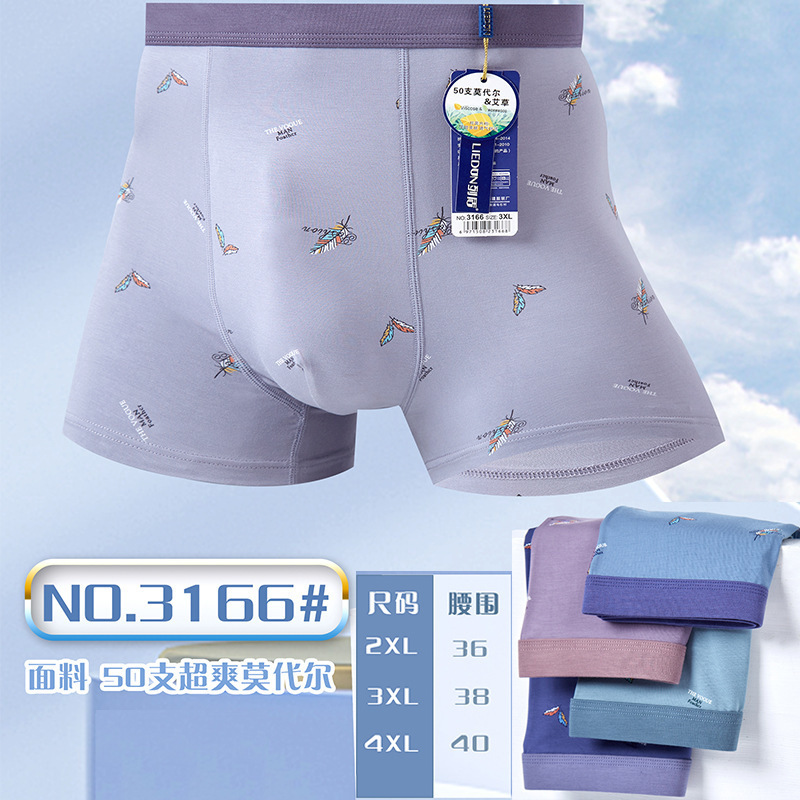 1MD50支纯棉加莫代尔男士内裤系列盾皮马棉平角裤列盾正规码