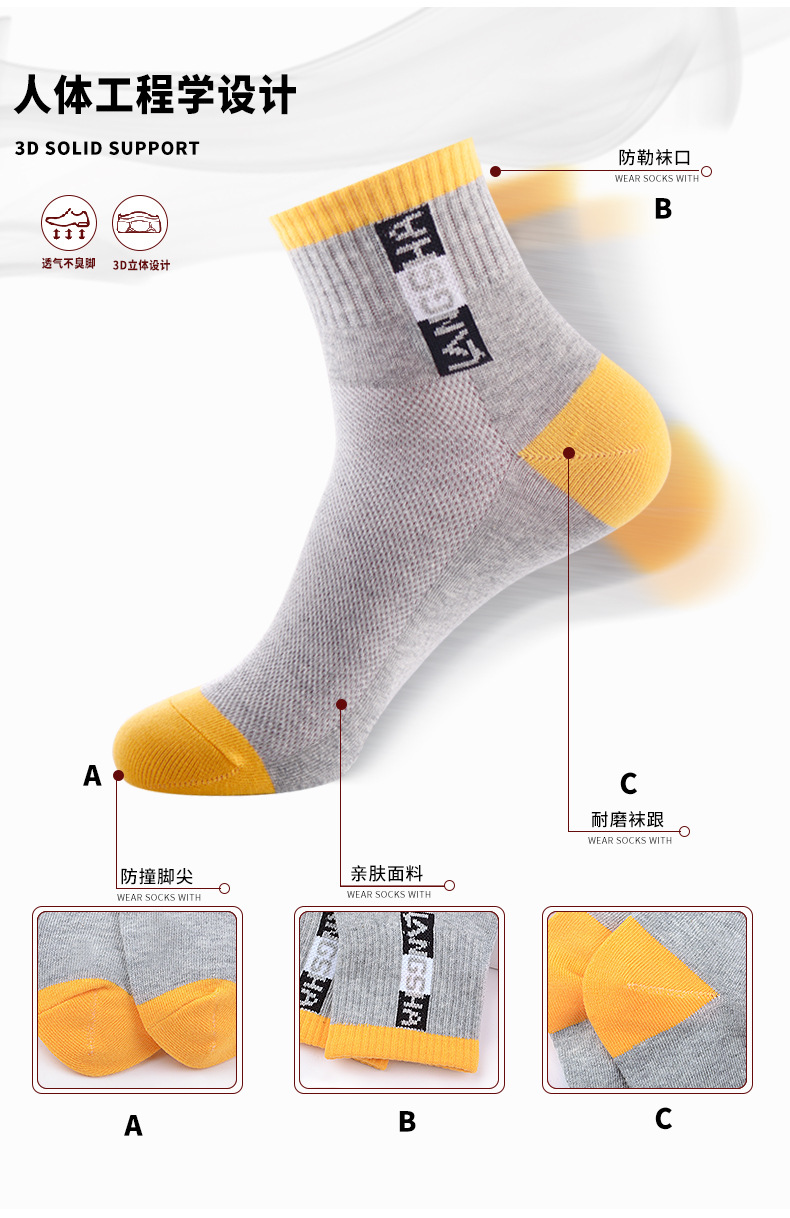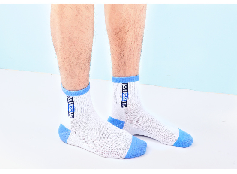 浪莎6双男纯棉袜子春夏薄款网眼中筒防臭透气全棉运动精品潮男袜