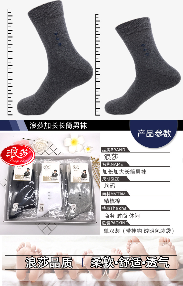 男士大号中厚吸汗宽松加大码短袜浪莎袜子男棉袜四季加长中筒男袜