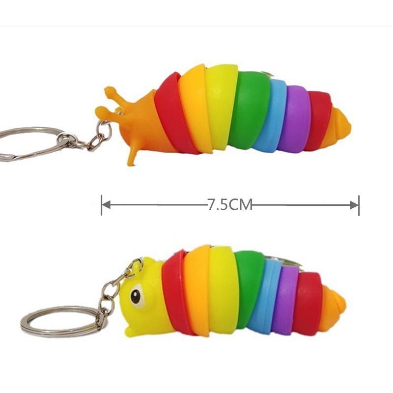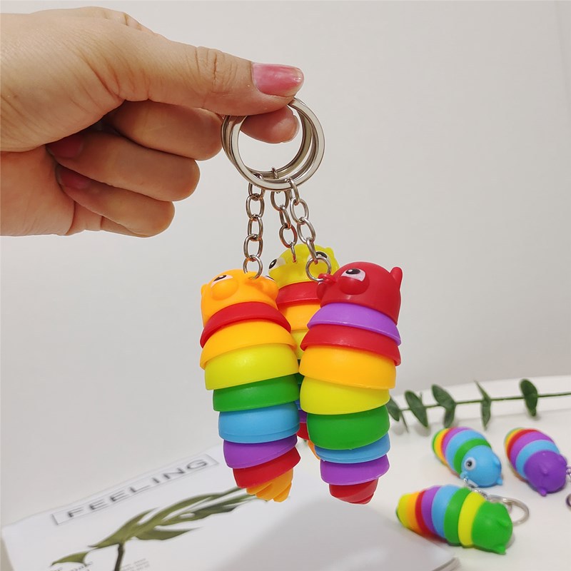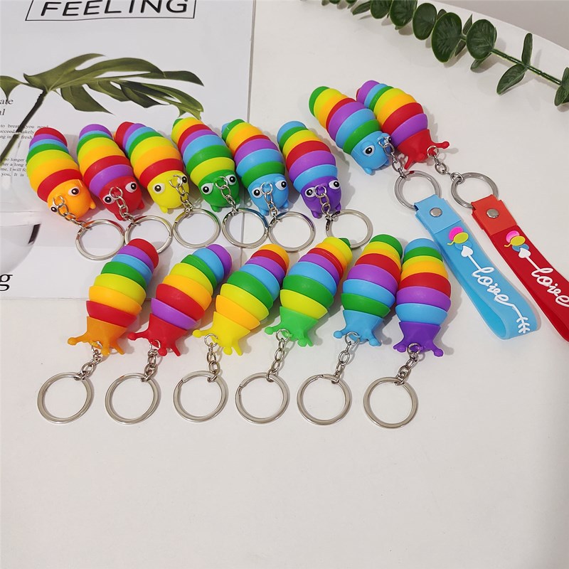厂家直销7.5CM彩虹毛毛虫钥匙扣 9节鼻涕虫蜗牛挂件儿童解压玩具