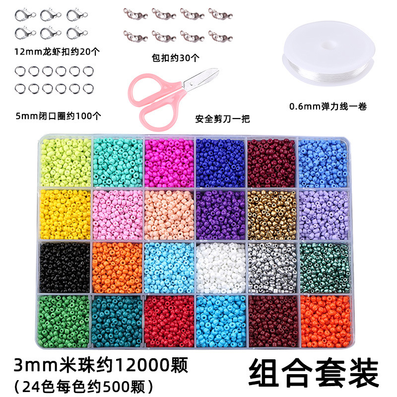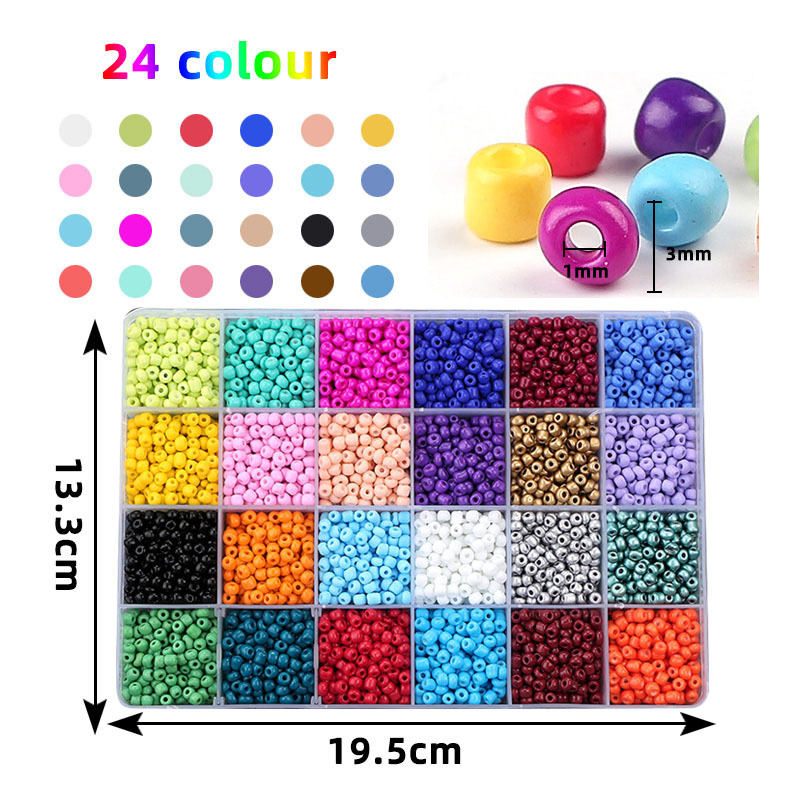 实色小米珠玻璃米珠烤漆珠染芯珠24色组合套装玻璃珠亚马逊爆款