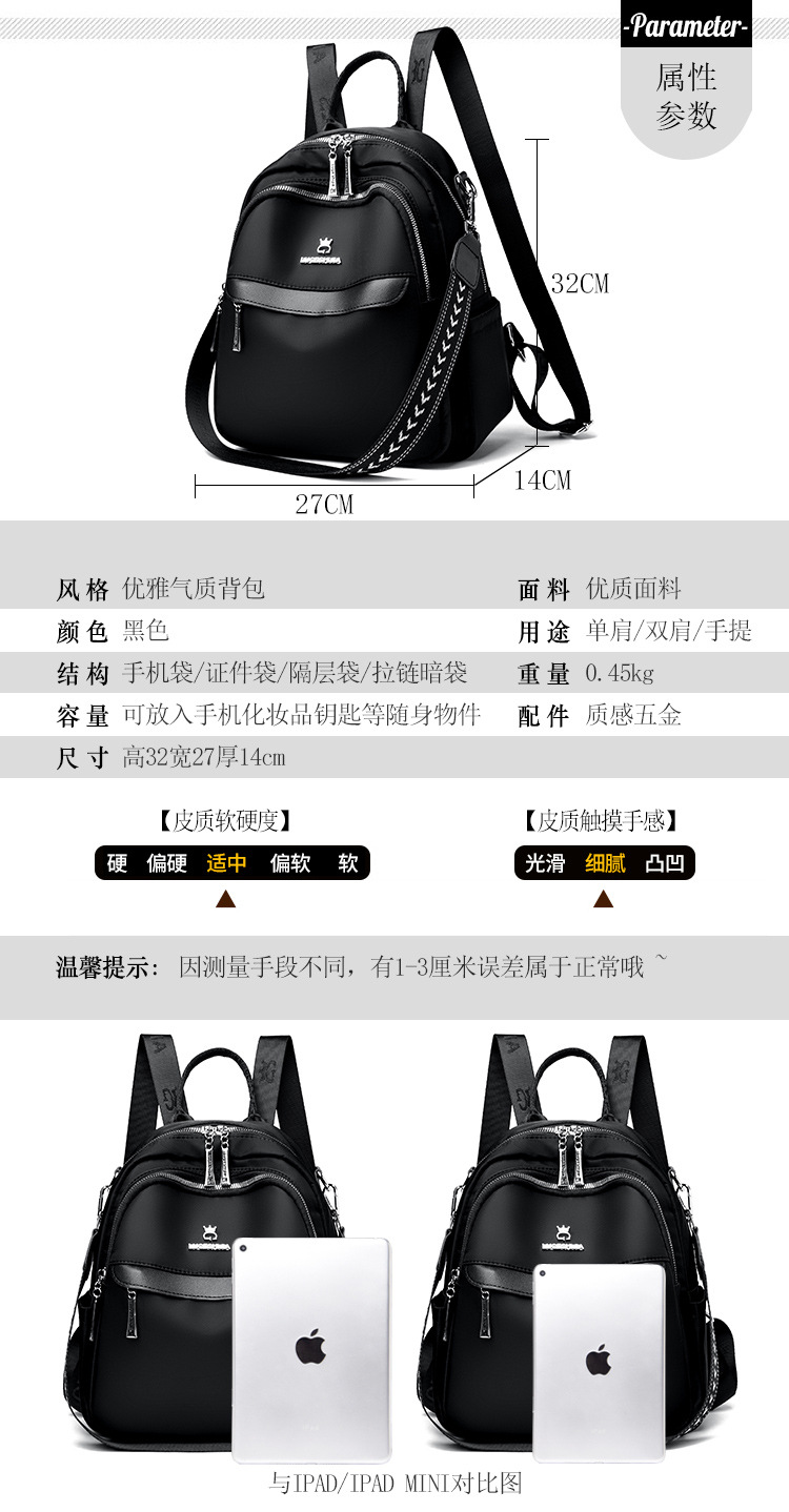 时尚新款双肩包女士新款尼龙旅行背包休闲双肩包