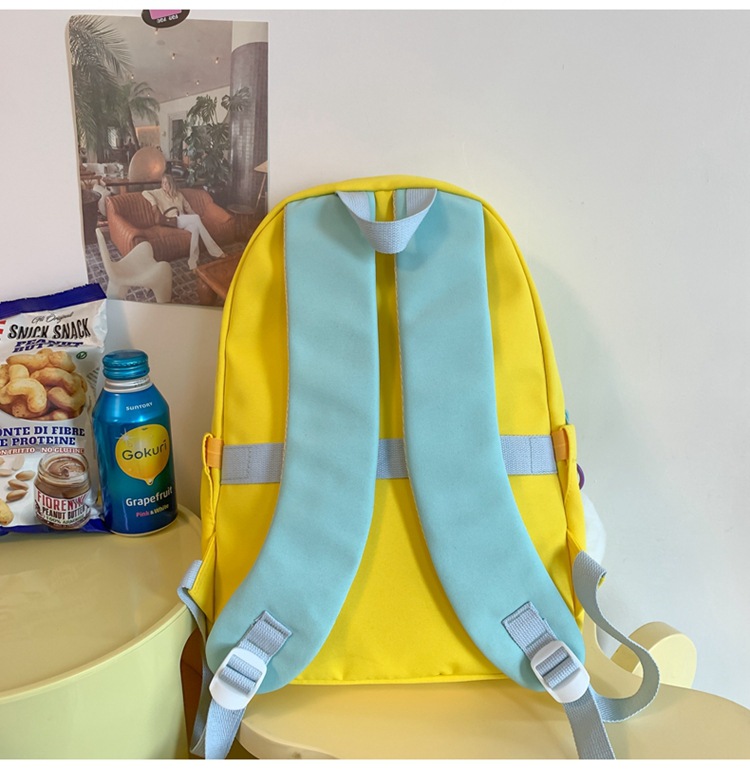 小清新休闲双肩包批发时尚拼色背包简约中学生书包