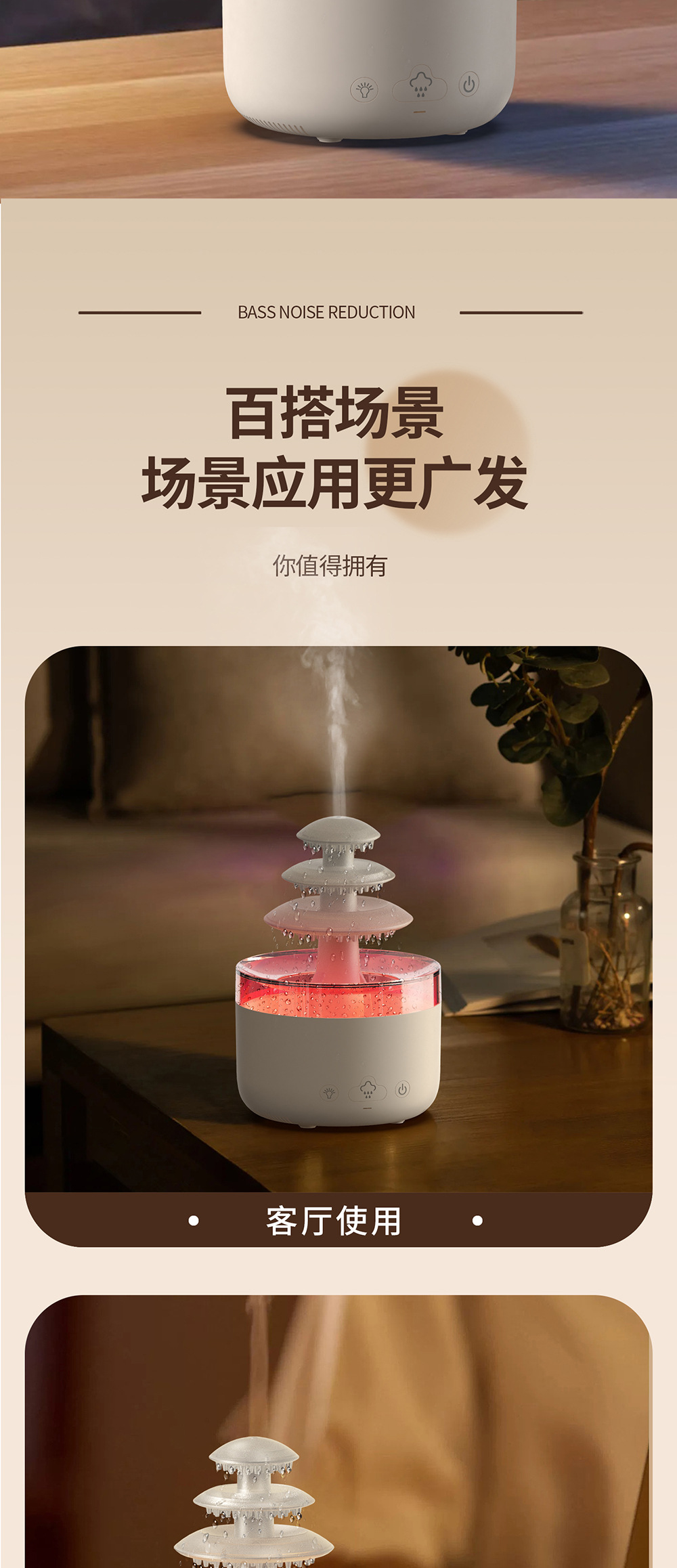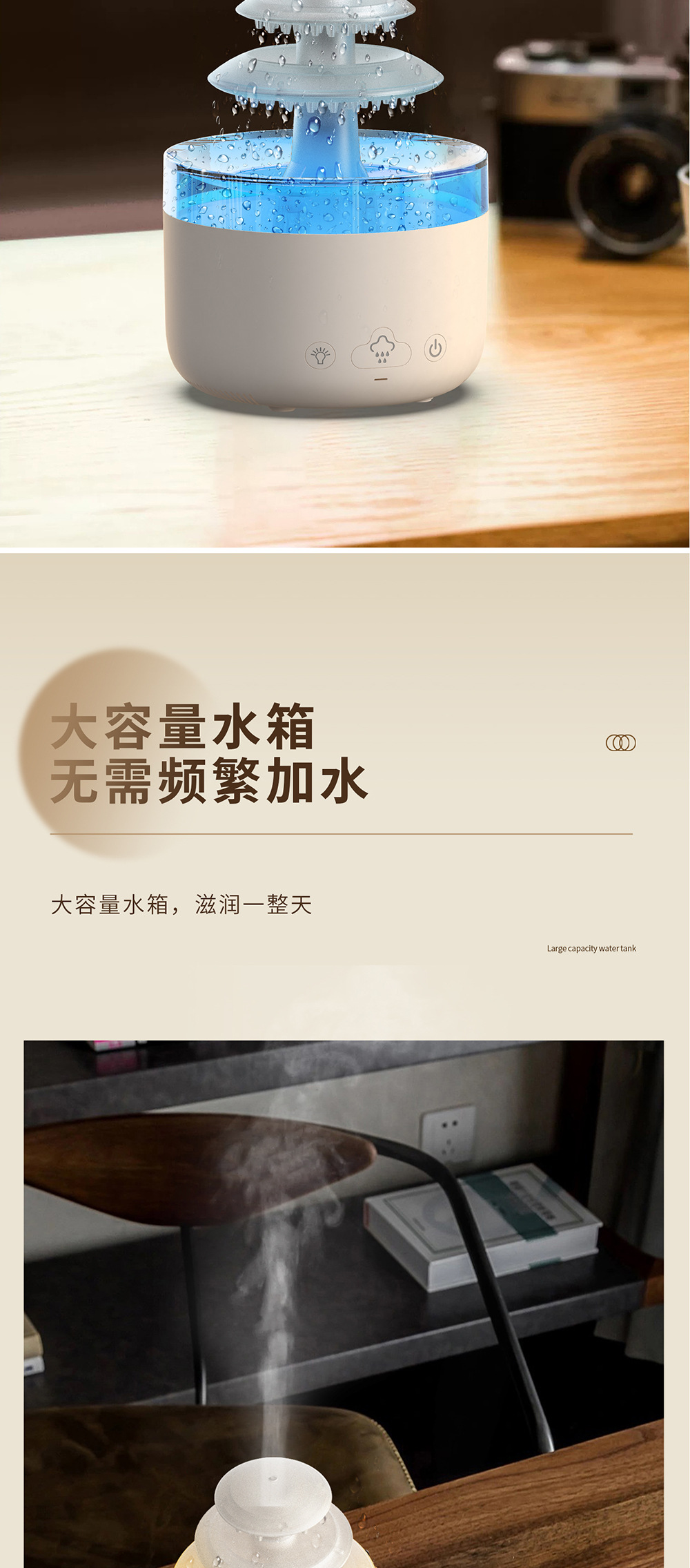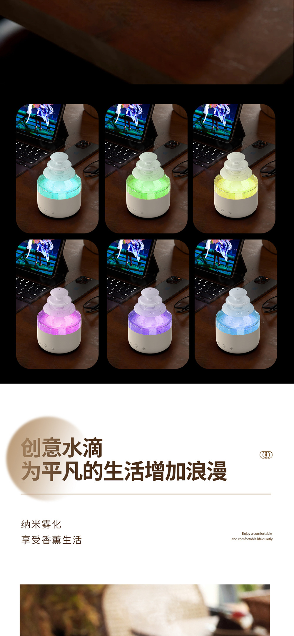 新款云雨香薰机家用桌面七彩氛围灯水滴式创意大喷雾量室内加湿器