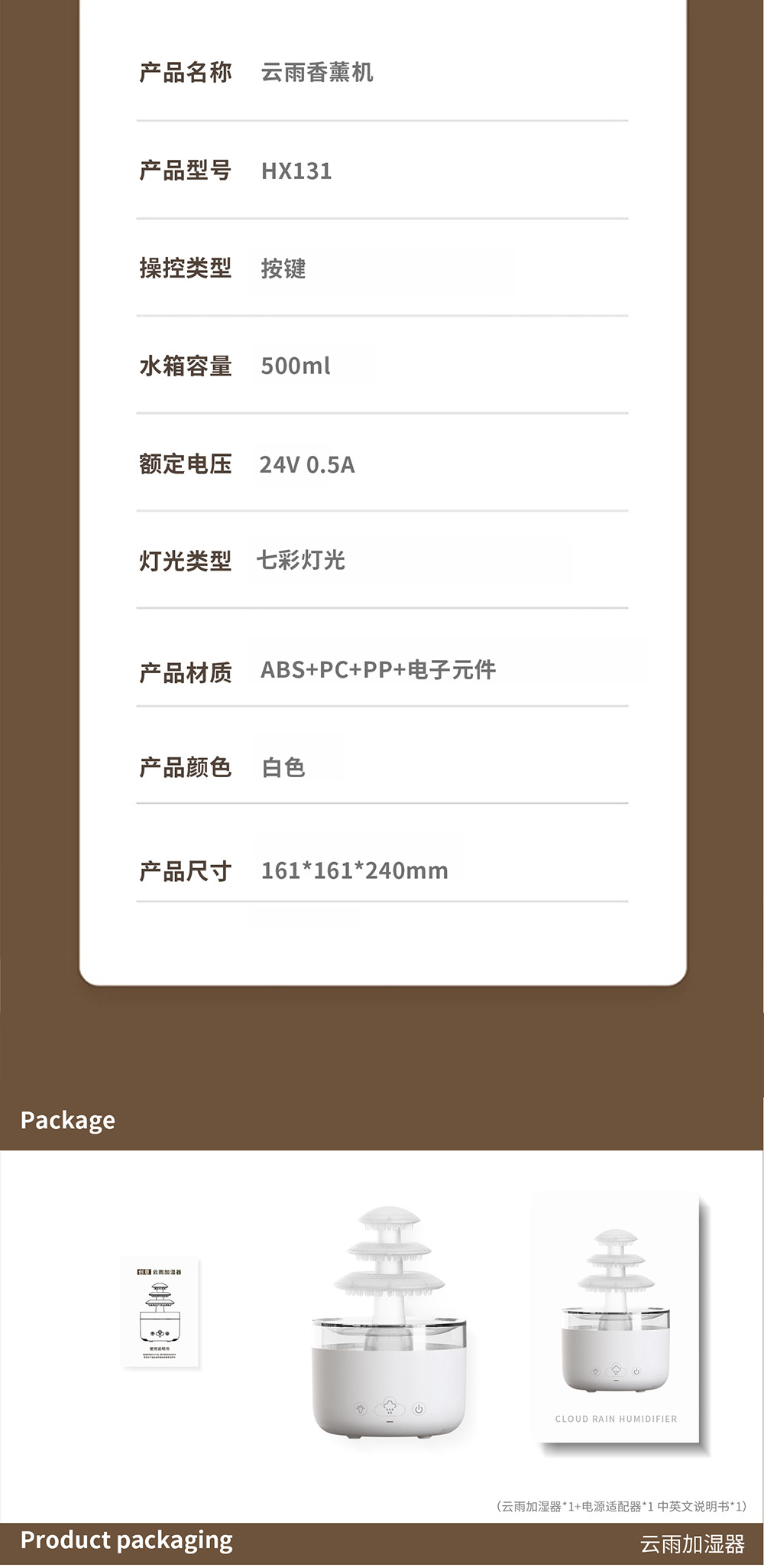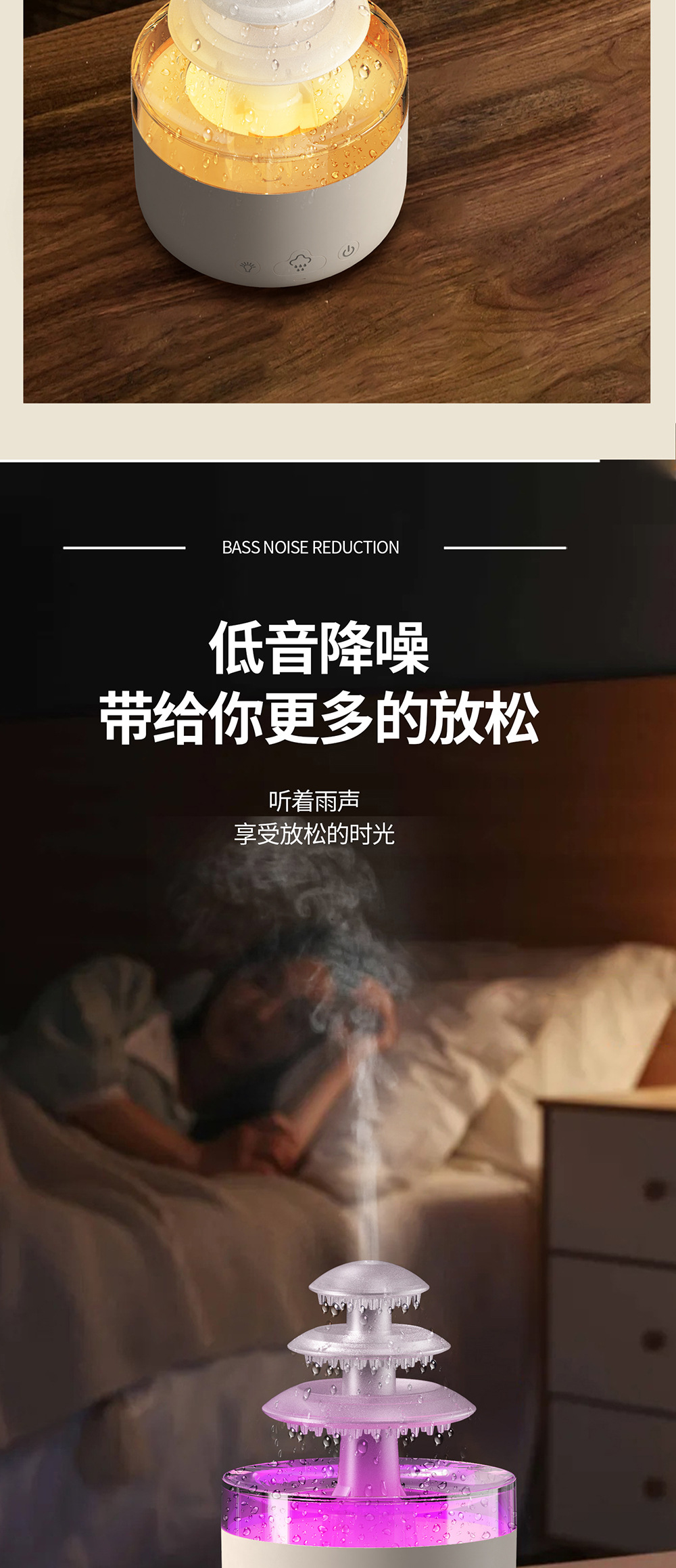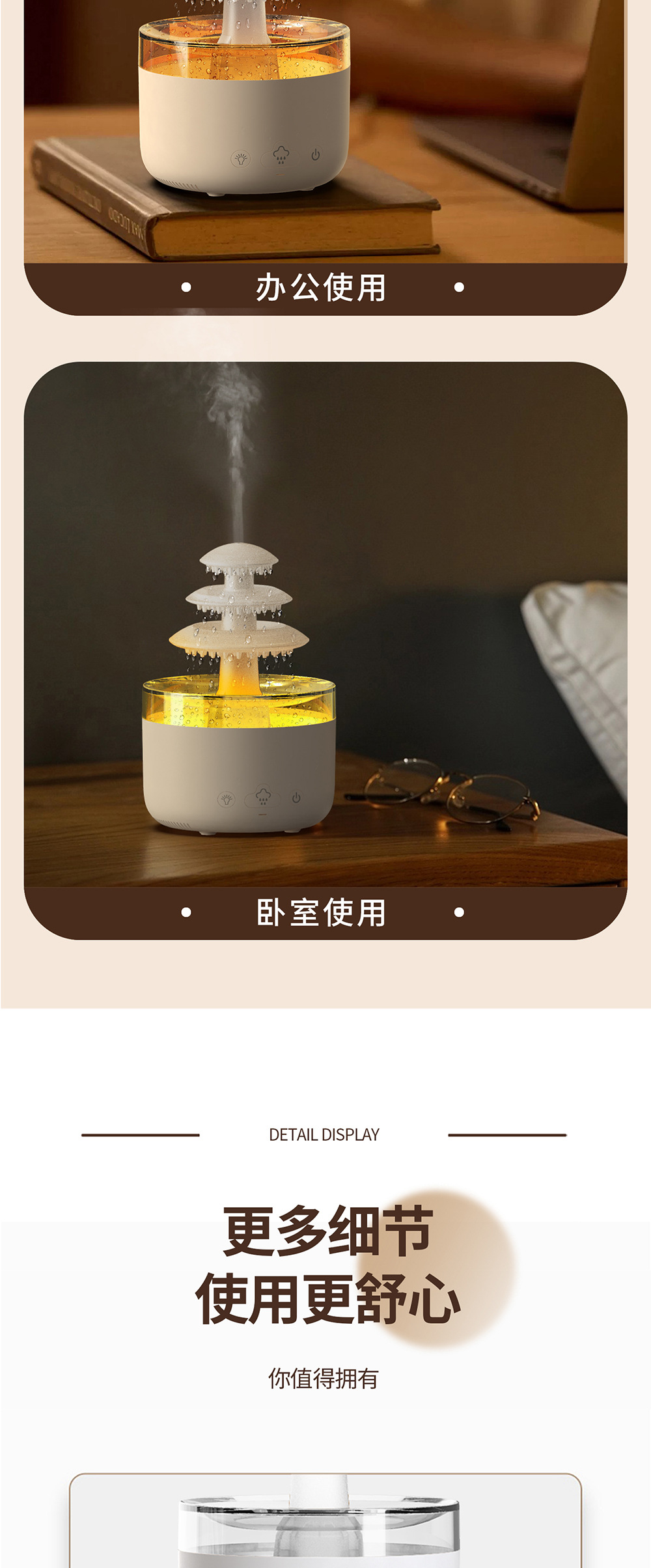 新款云雨香薰机家用桌面七彩氛围灯水滴式创意大喷雾量室内加湿器