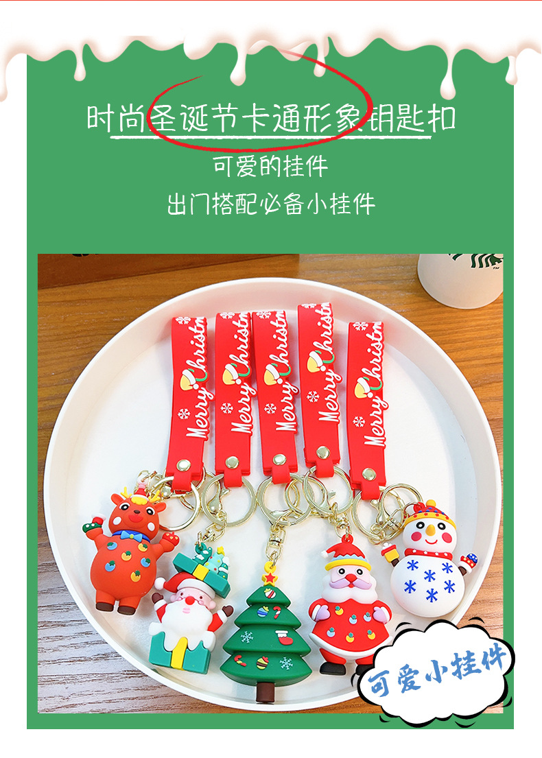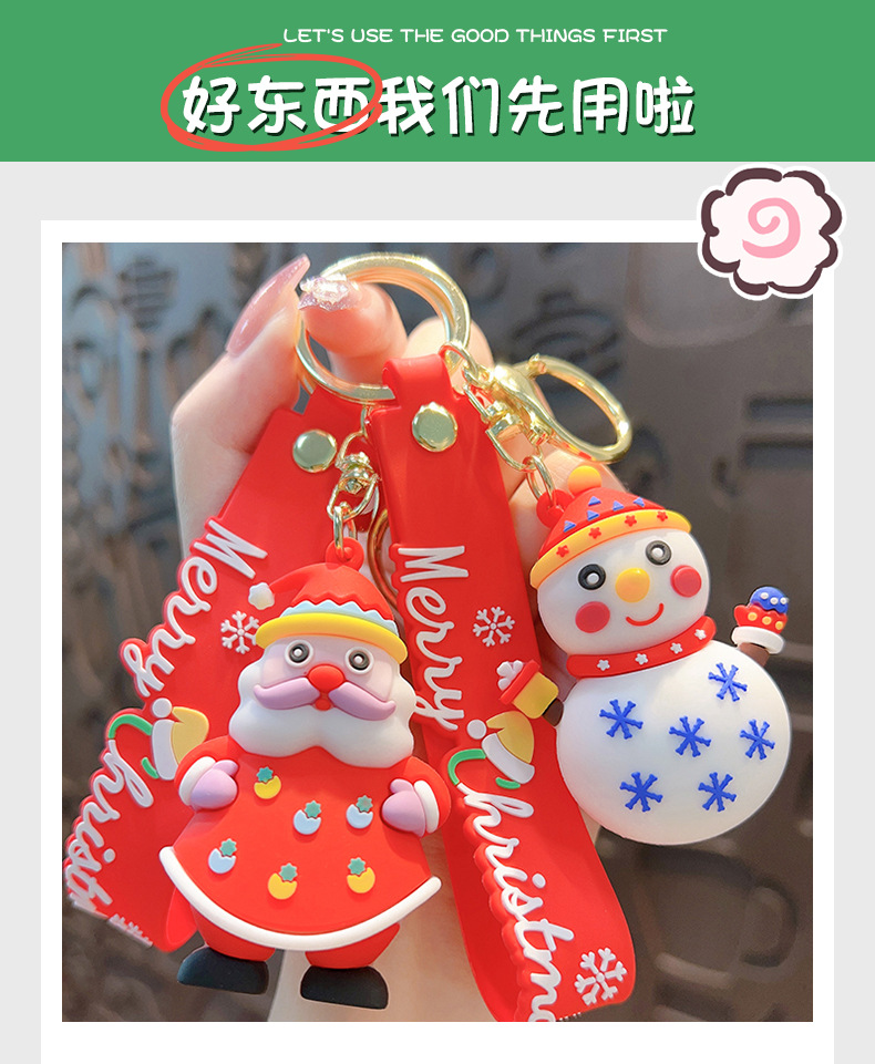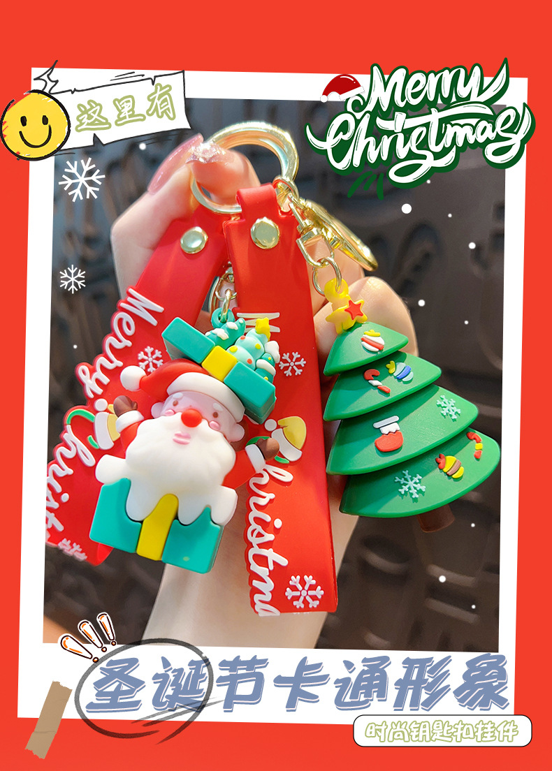 卡通圣诞老人钥匙扣挂件雪人汽车钥匙链圈书包挂饰时尚小礼品批发