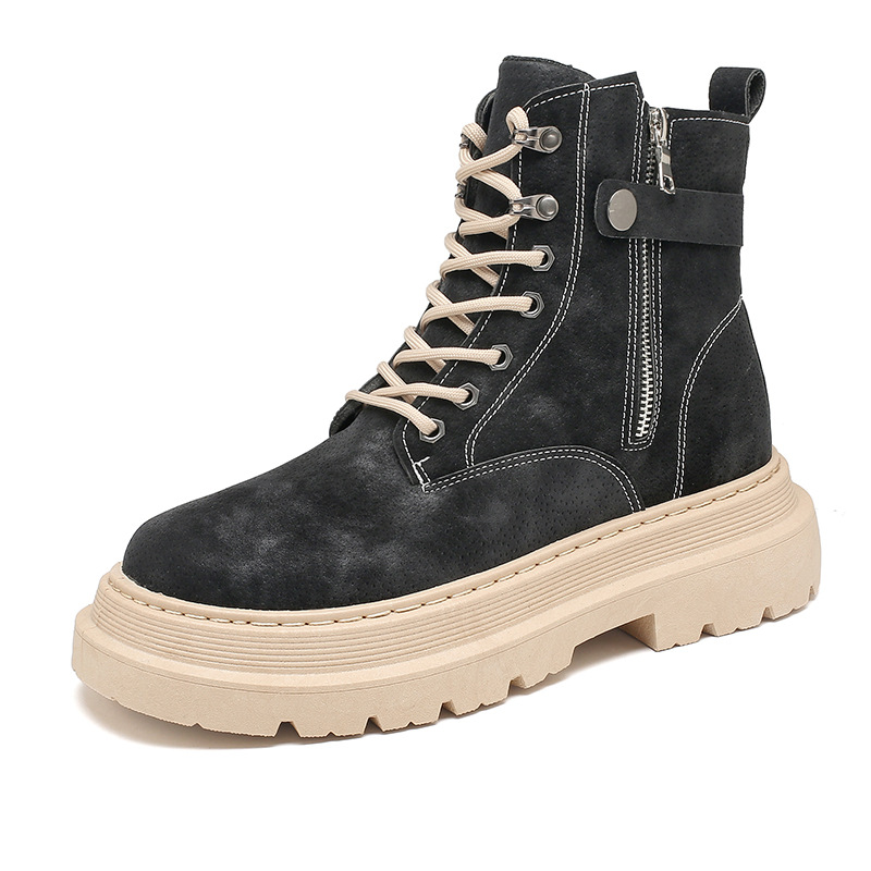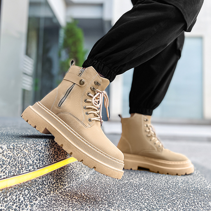 跨境秋冬新款2023男士厚底高帮系带马丁鞋工装靴时尚潮流休闲机车