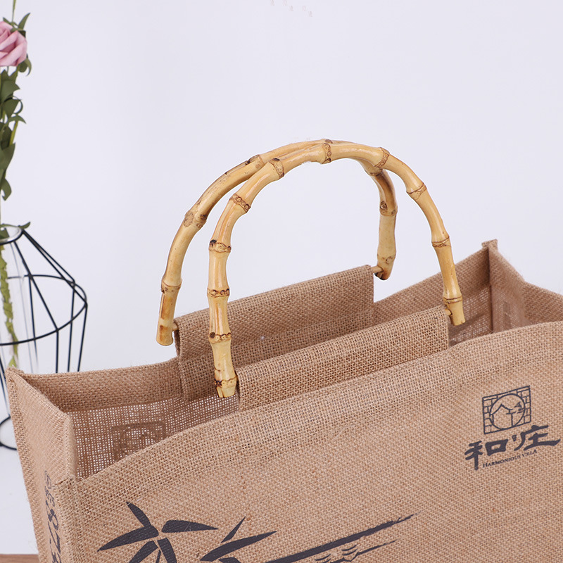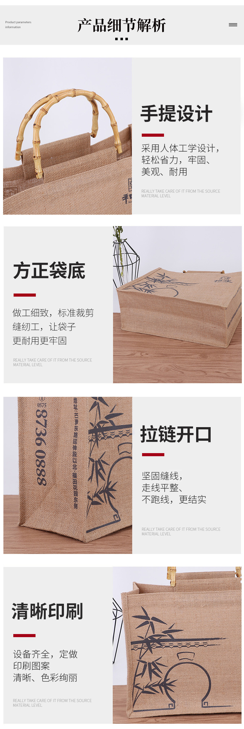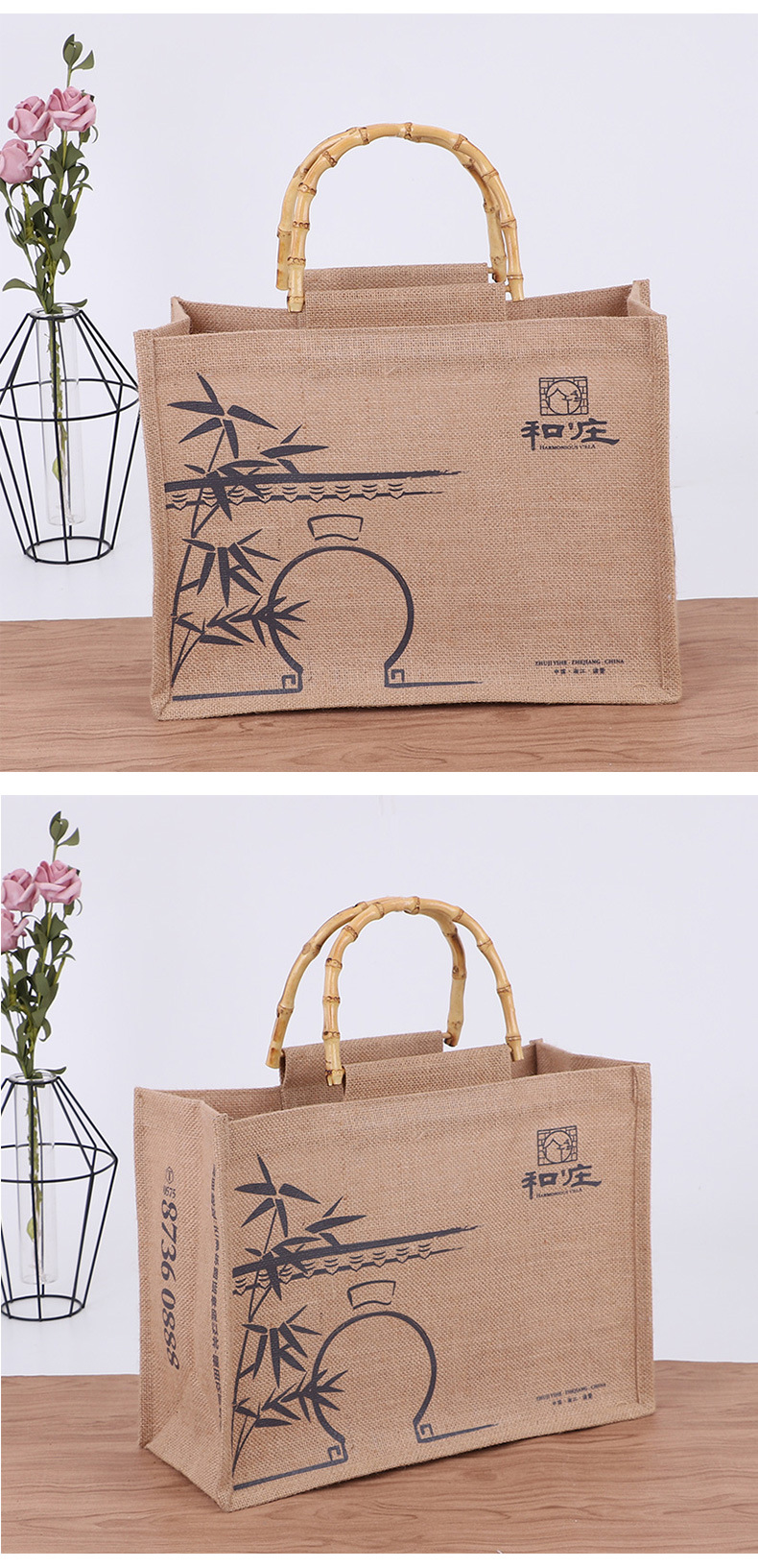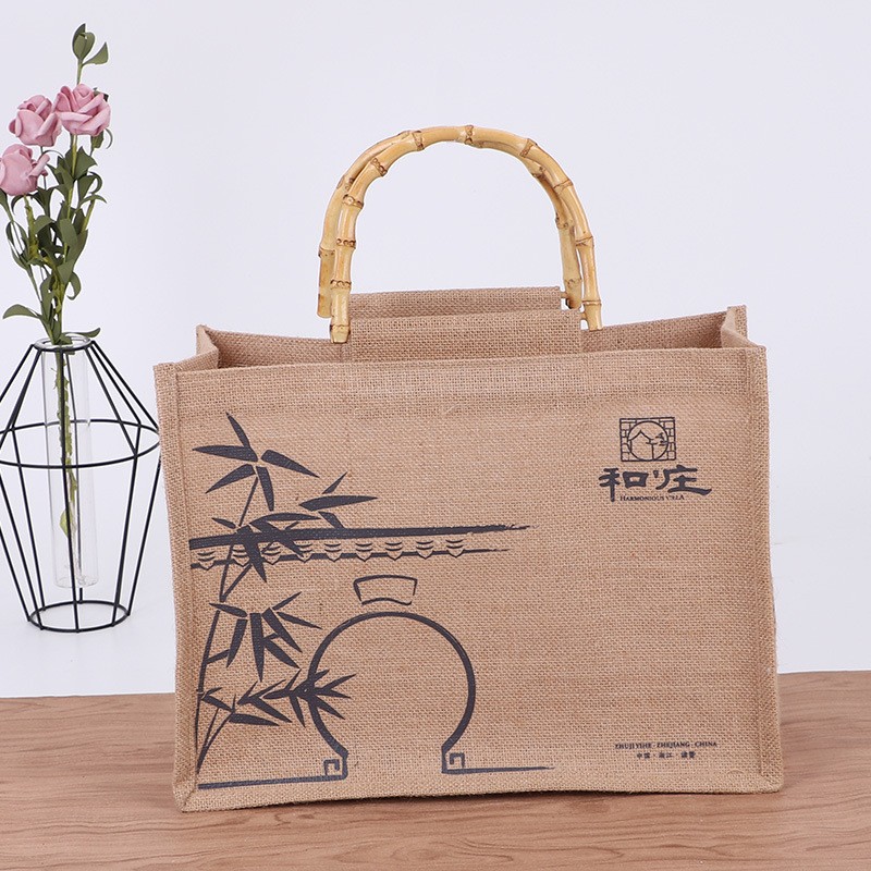 购物麻布包装袋 竹节手提礼品袋 彩印环保手提袋 黄麻袋加印logo