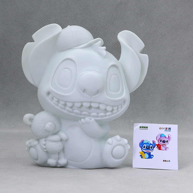 网红非石膏娃娃批发流体熊白胚手工diy涂鸦存钱罐搪胶娃娃涂色