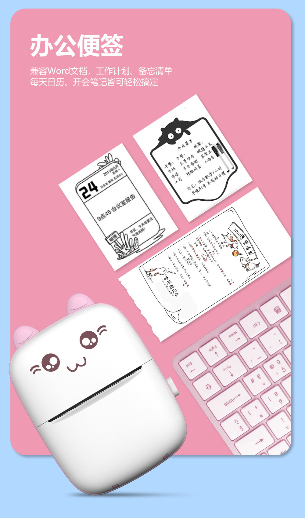 跨境爆款错题口袋迷你打印机学生便签条码热敏打印机无需墨水蓝牙