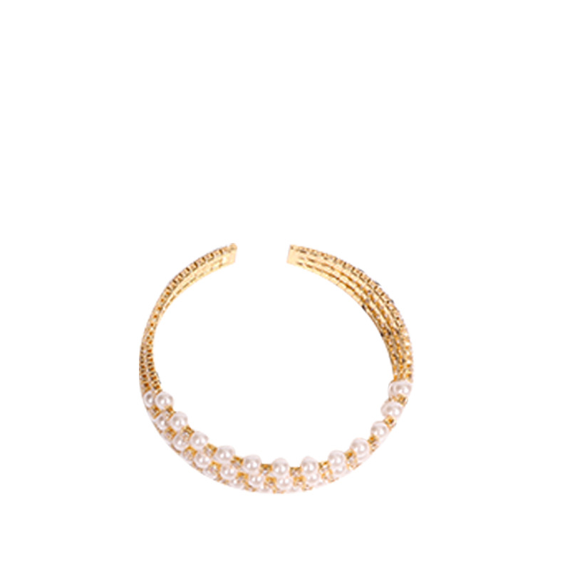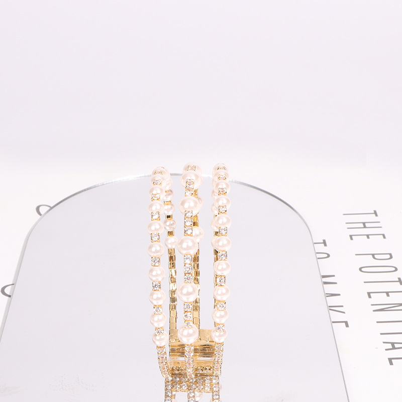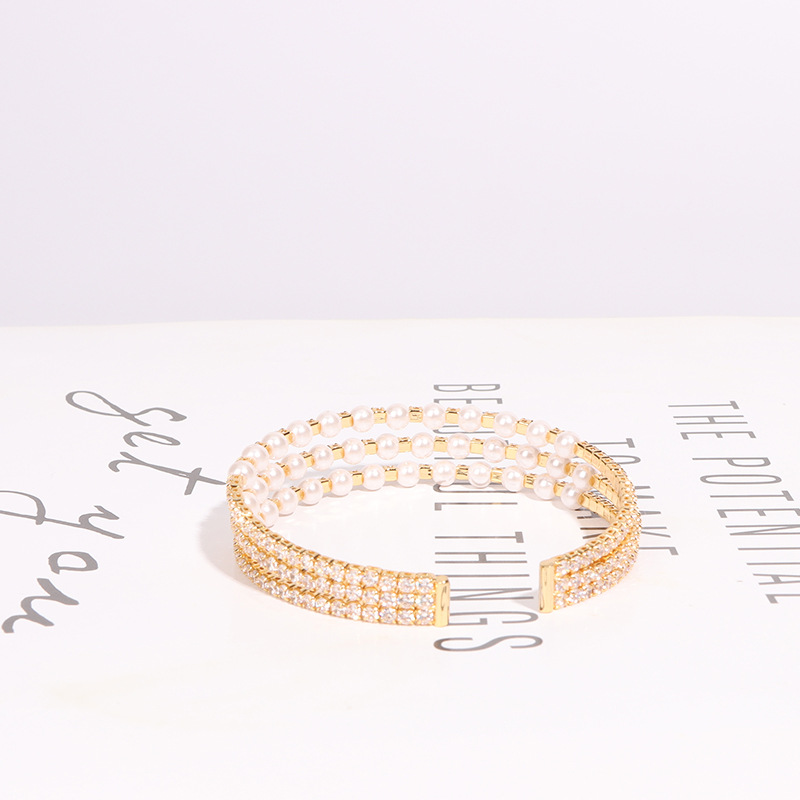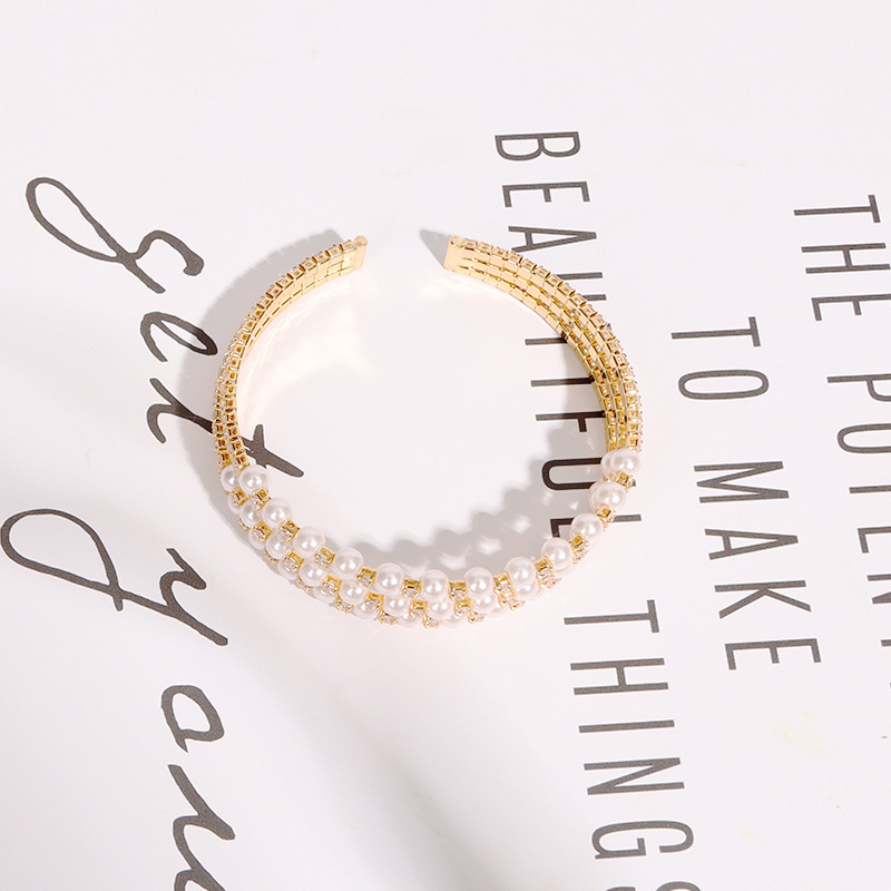 简约个性潮珍珠手镯夏季镶钻水晶锆石开口手环网红时尚设计感手饰