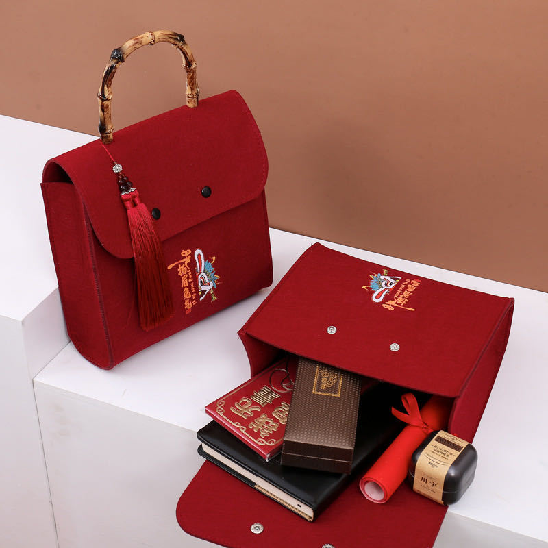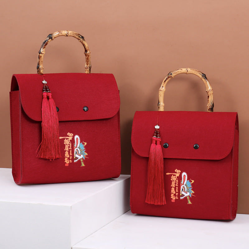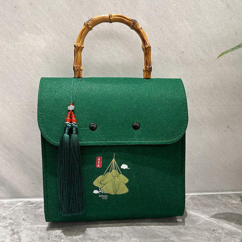 创意国潮风端午节毛毡礼品袋粽子包毛毡包手提袋兔年毛毡包礼盒