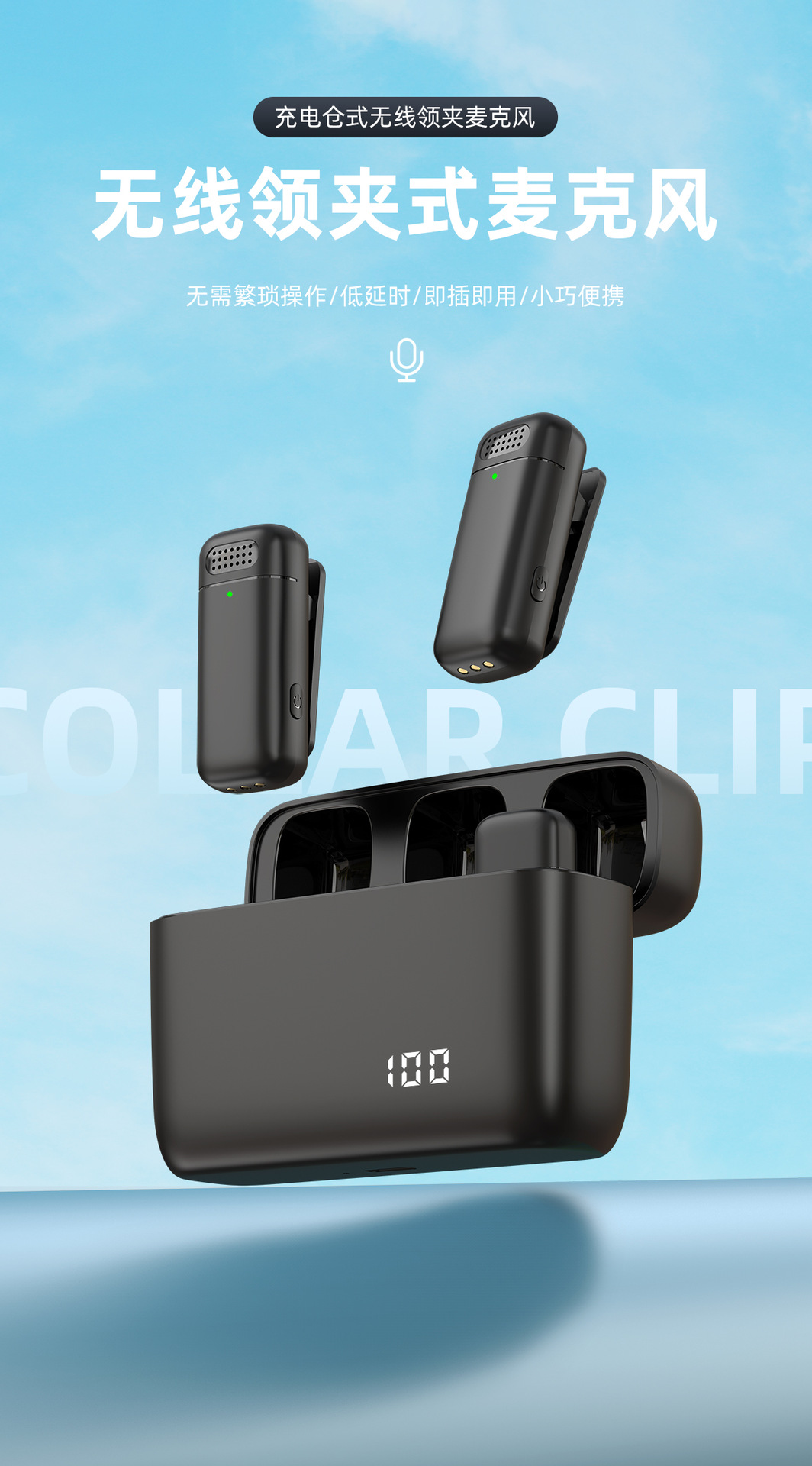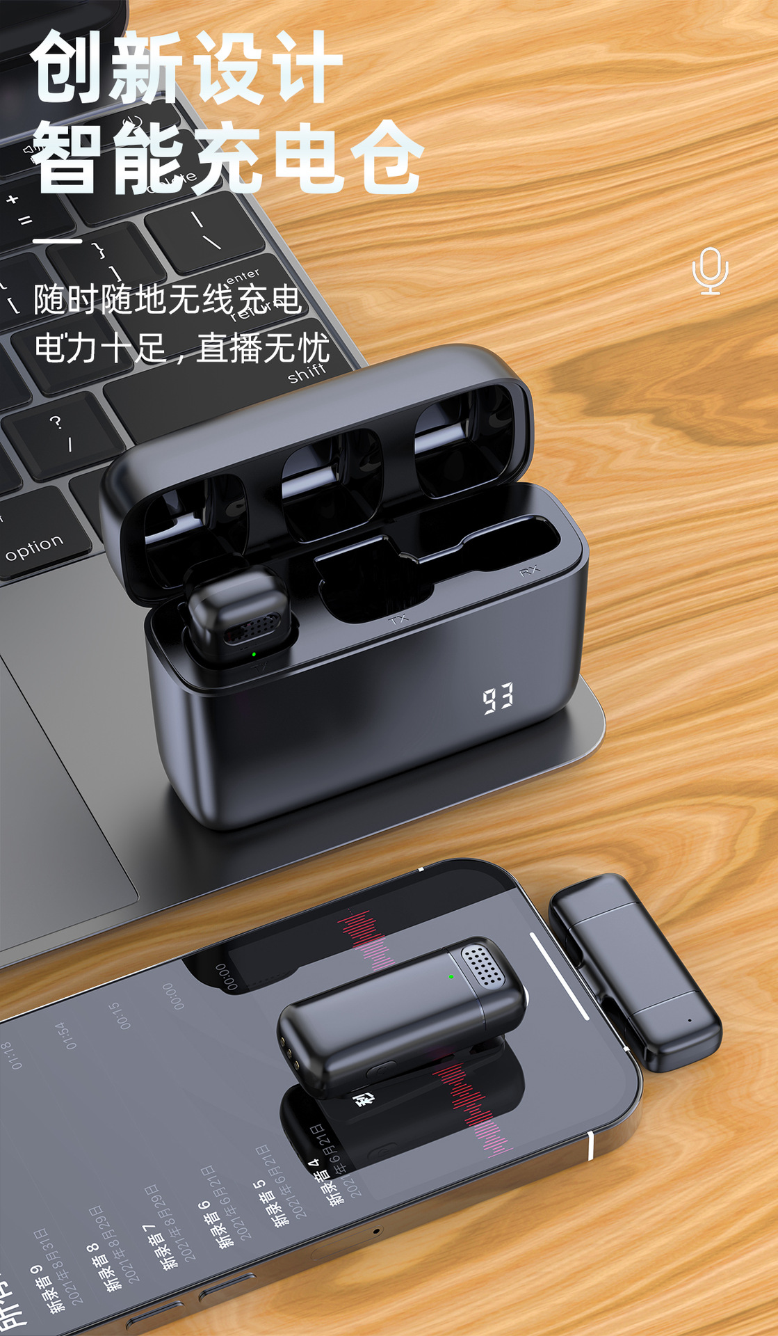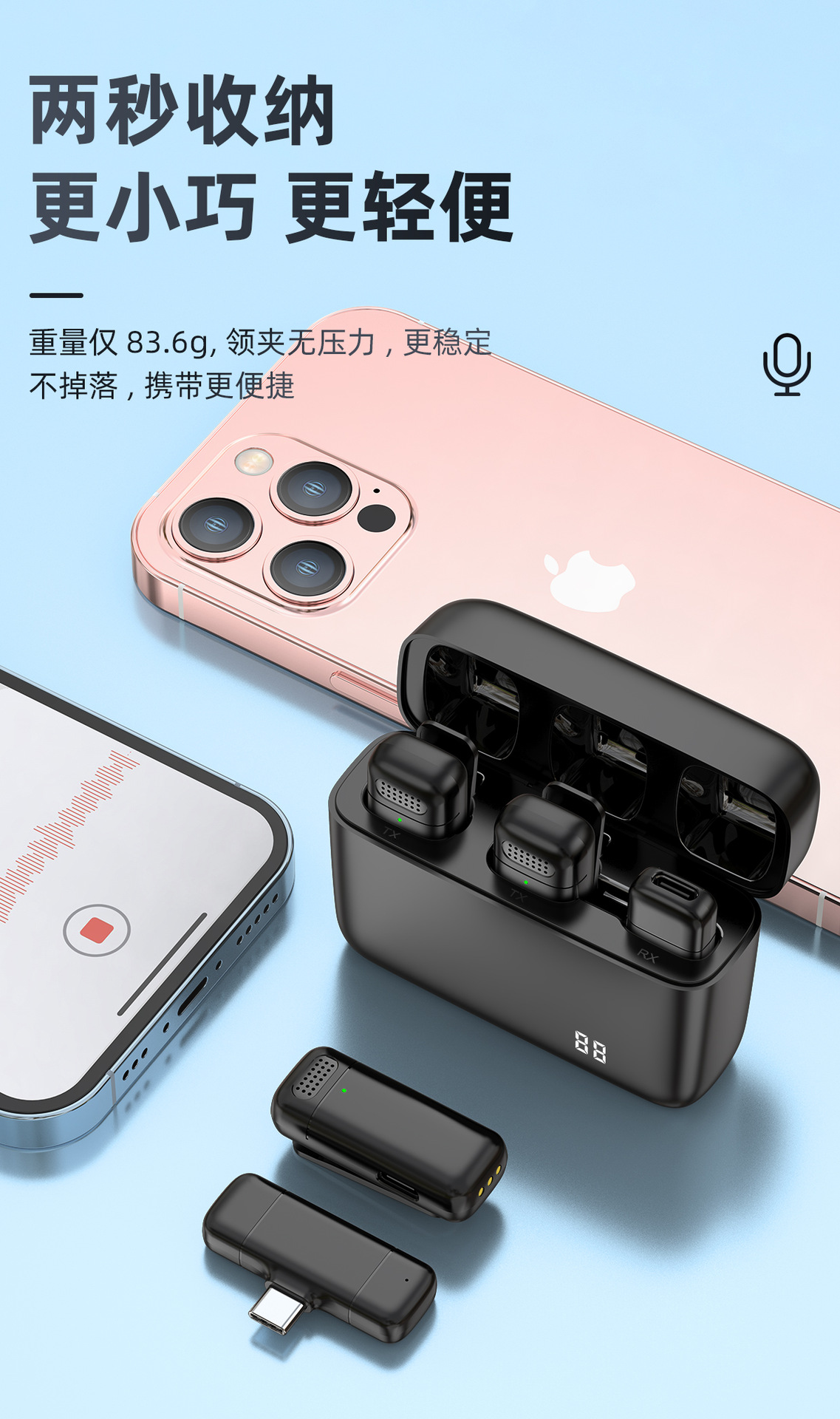 跨境爆款K13带仓无线领夹麦克风一拖二带数显长续航户外录音话筒