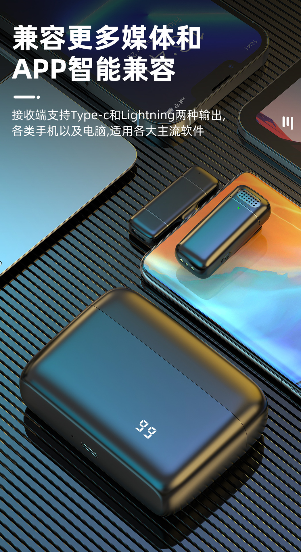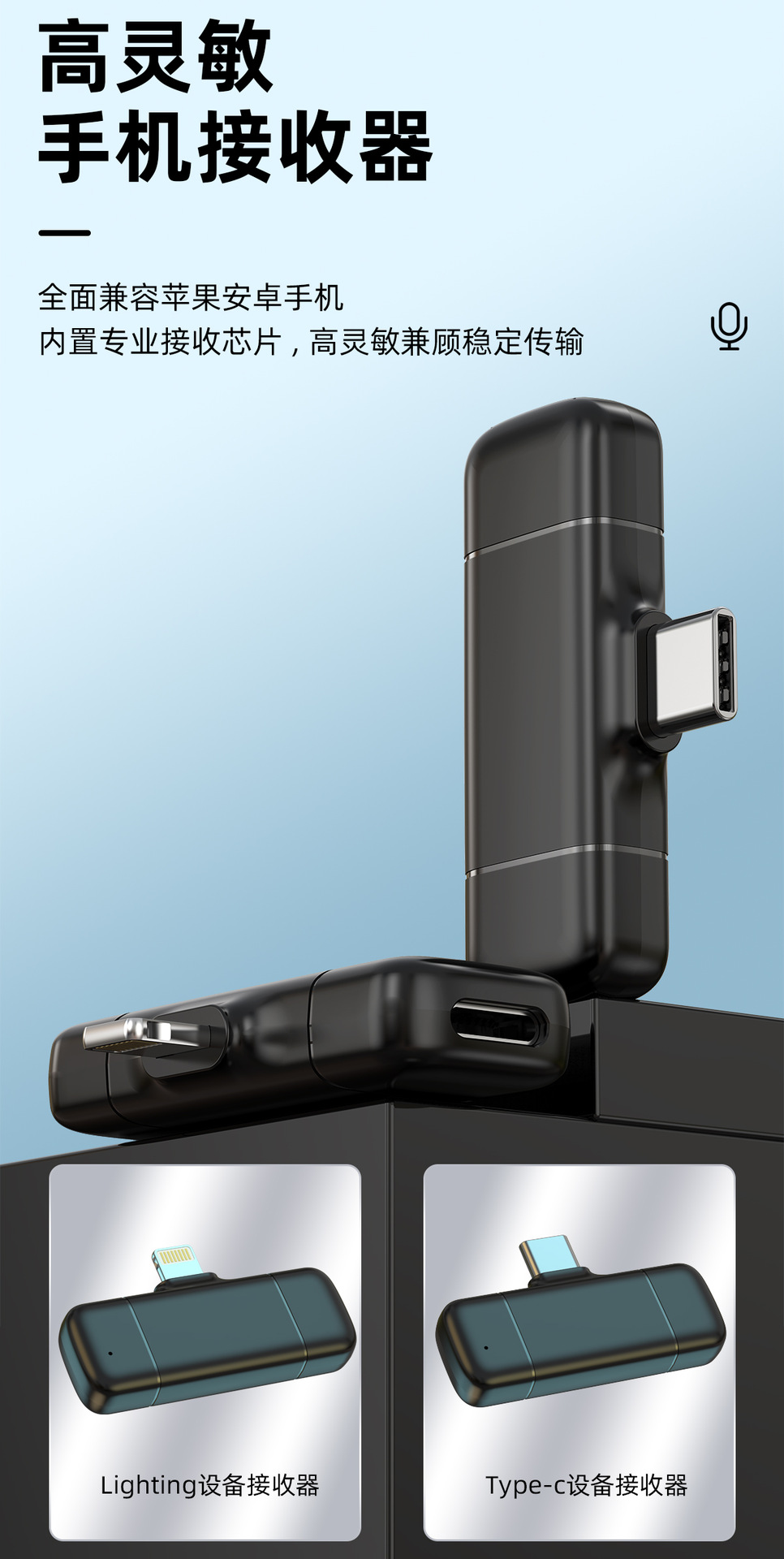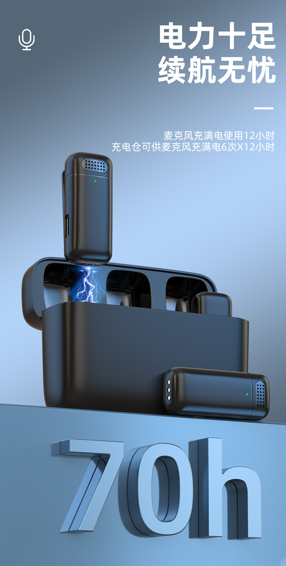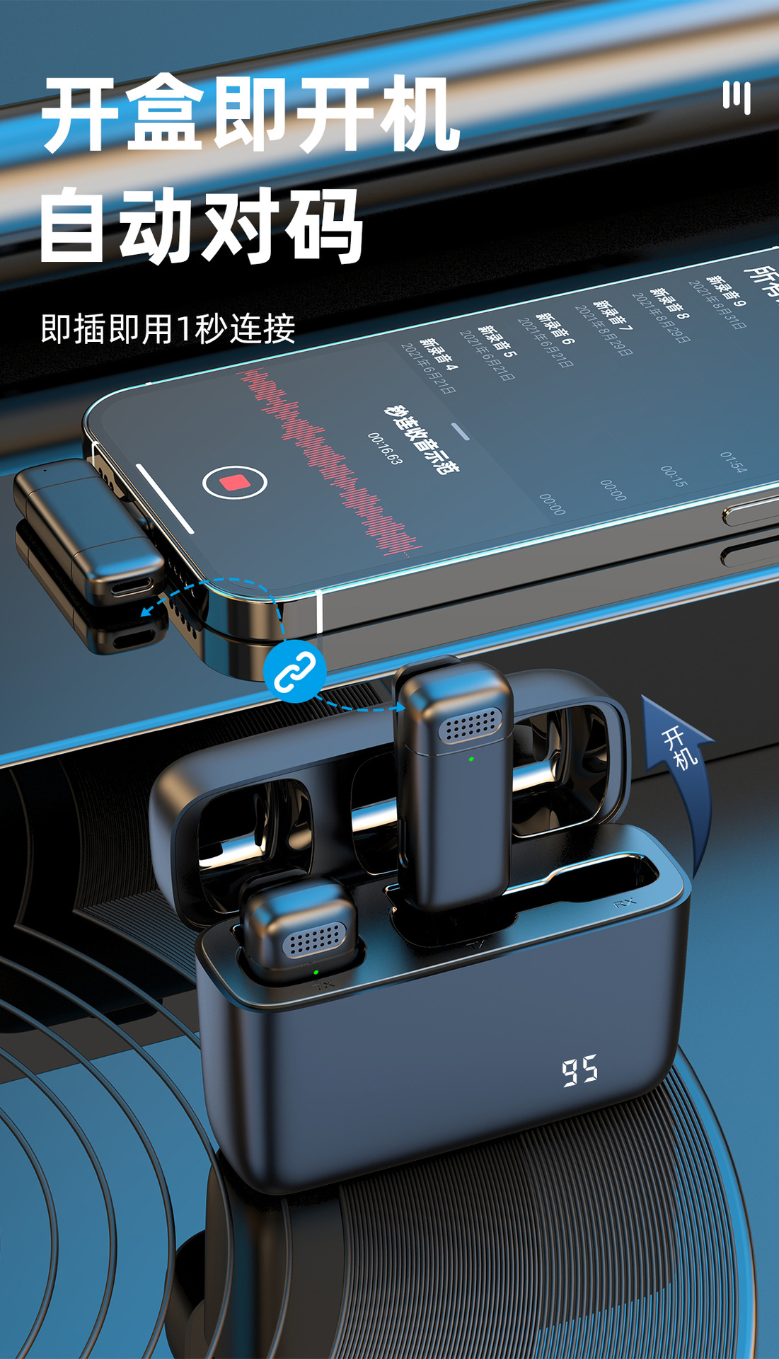 跨境爆款K13带仓无线领夹麦克风一拖二带数显长续航户外录音话筒