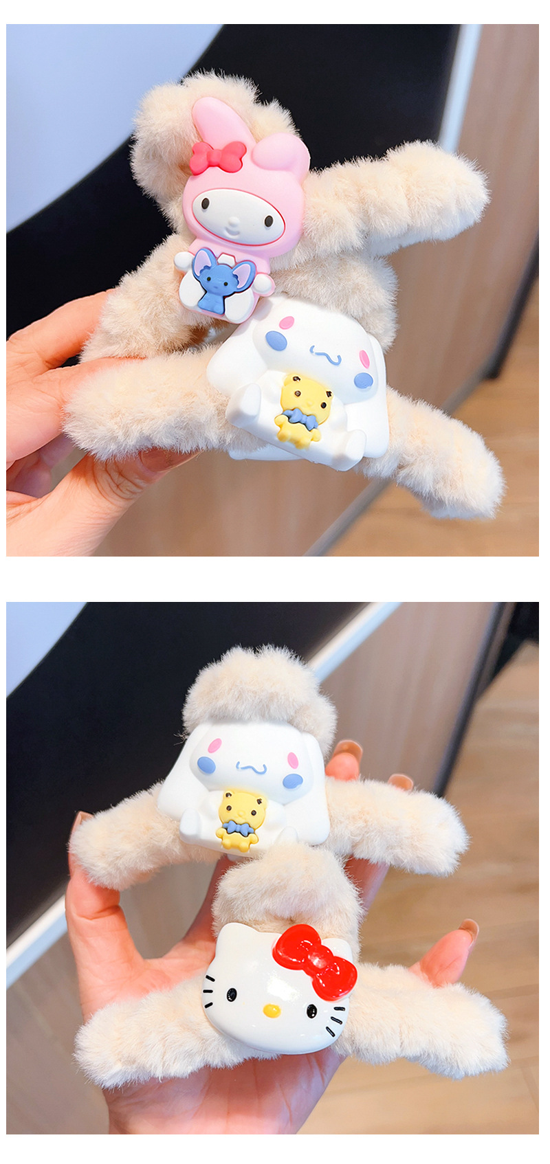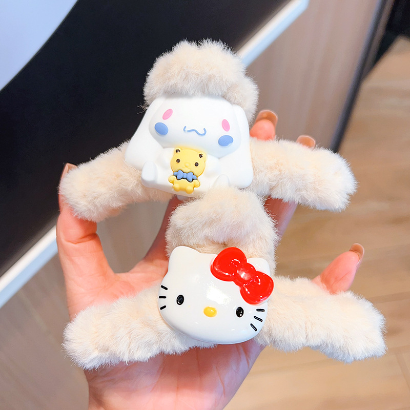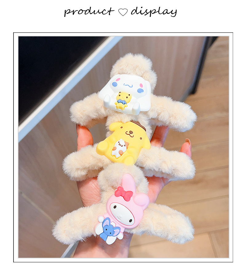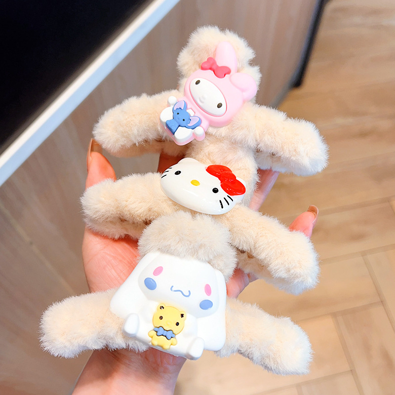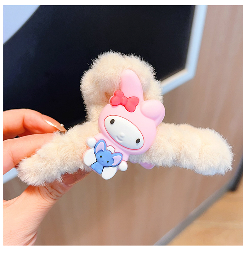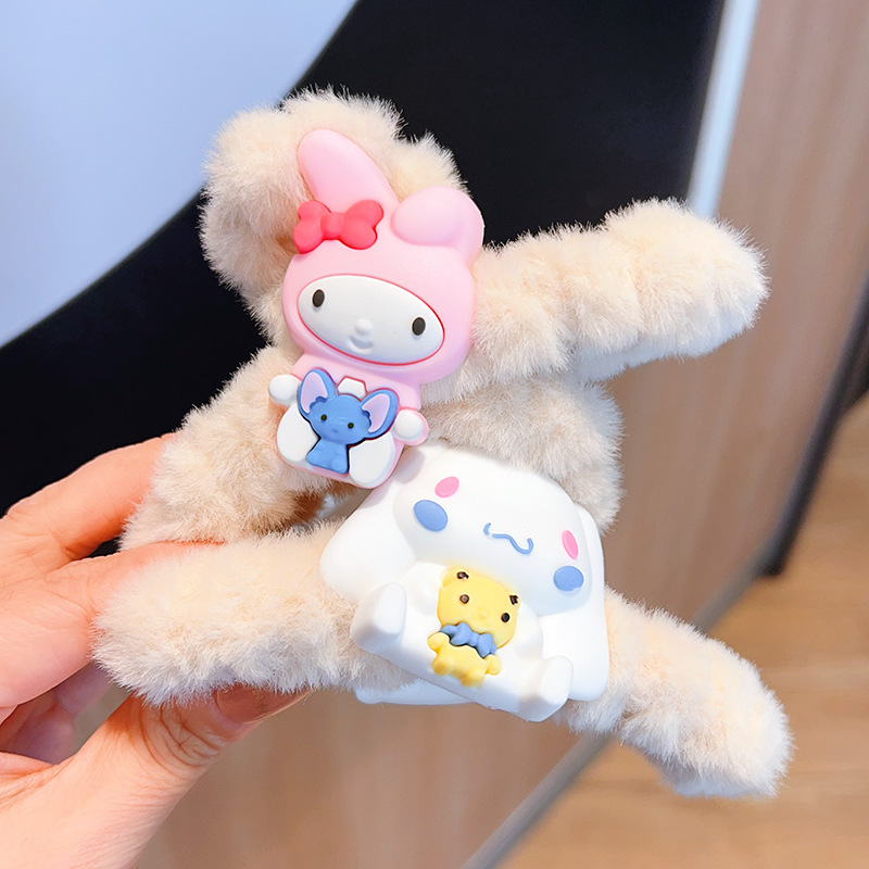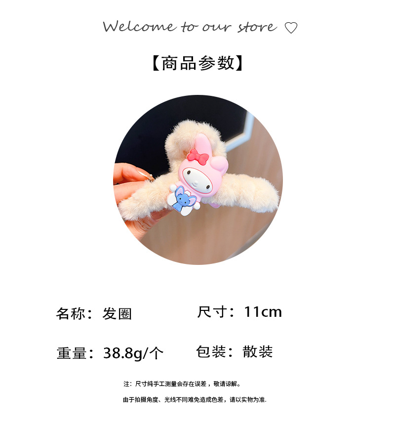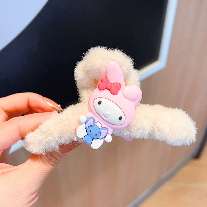 新款秋冬敲大号毛绒库洛米发抓可爱多巴胺彩色大耳狗兔子抓夹盘发