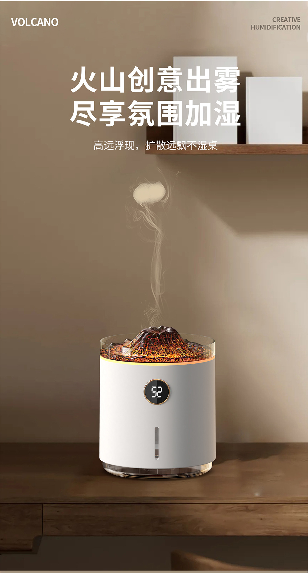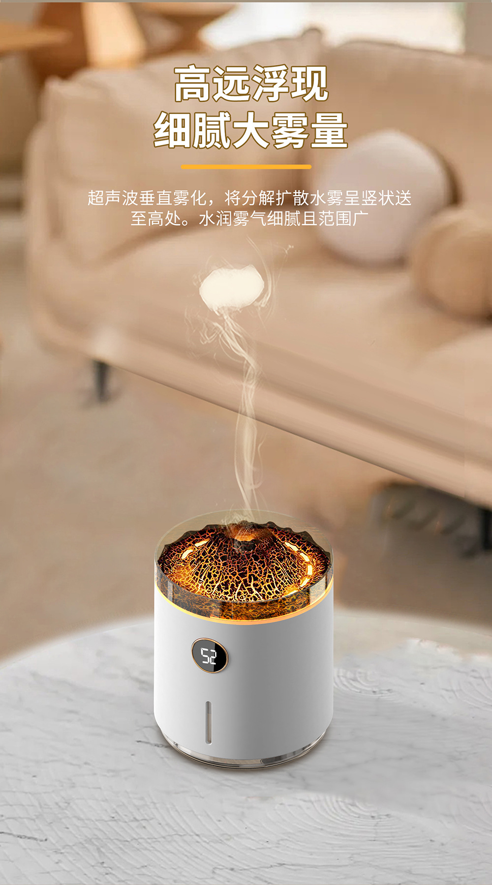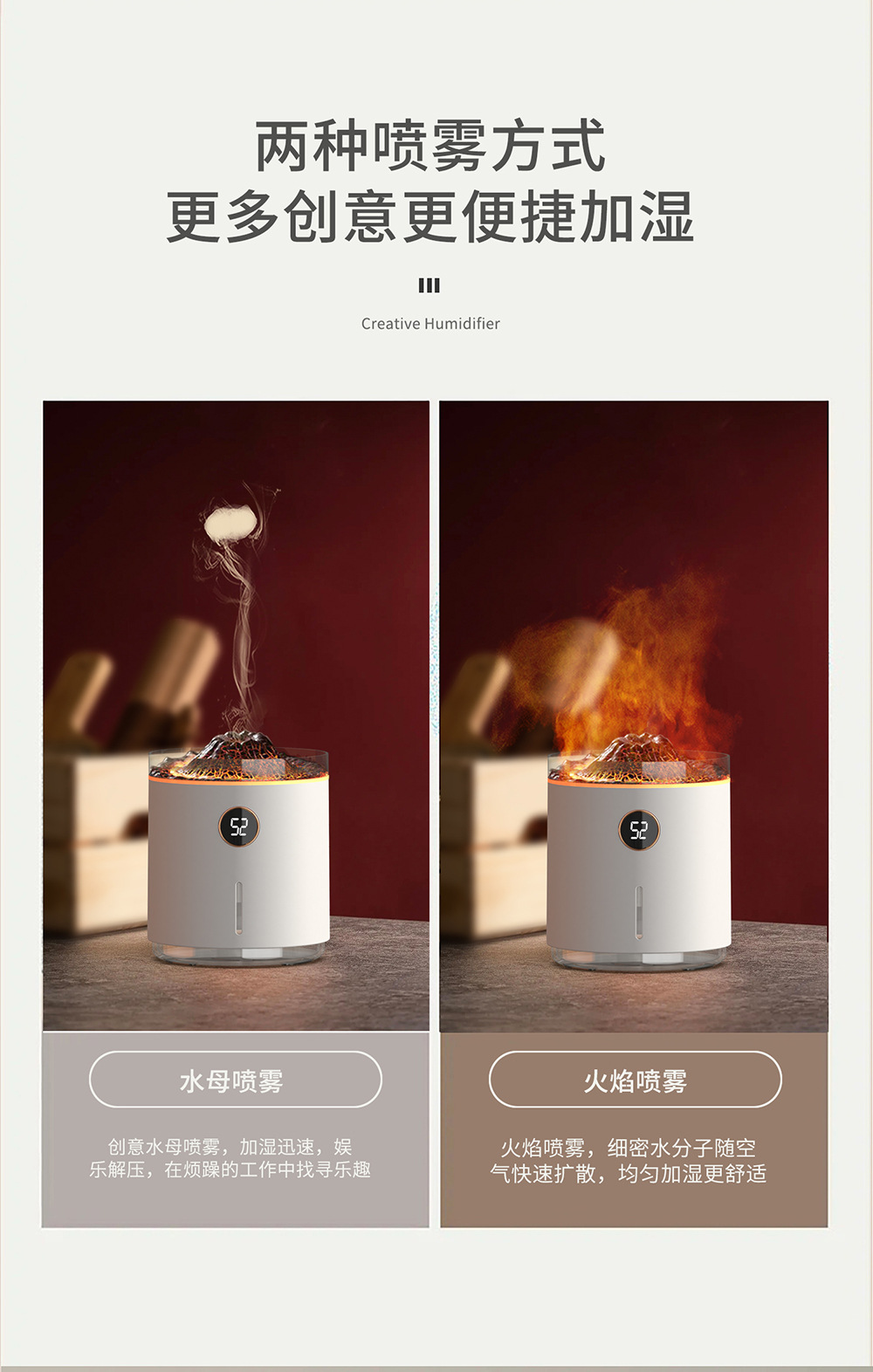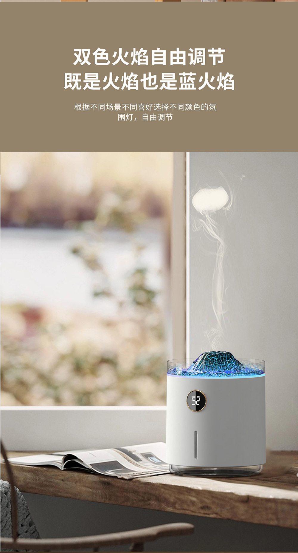 2023新款吐圈喷雾氛围火山香薰机家用卧室精油香氛机水母火焰加湿