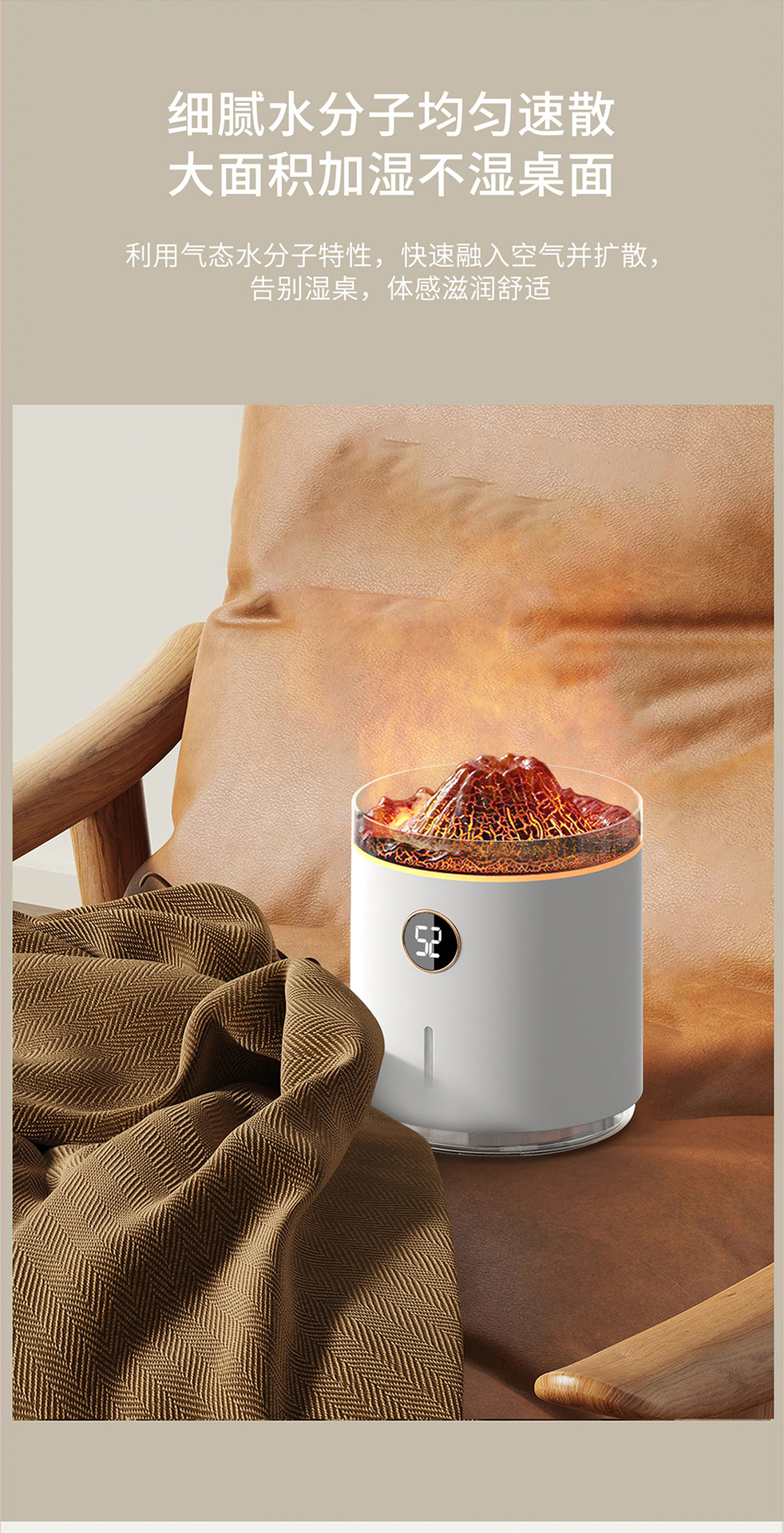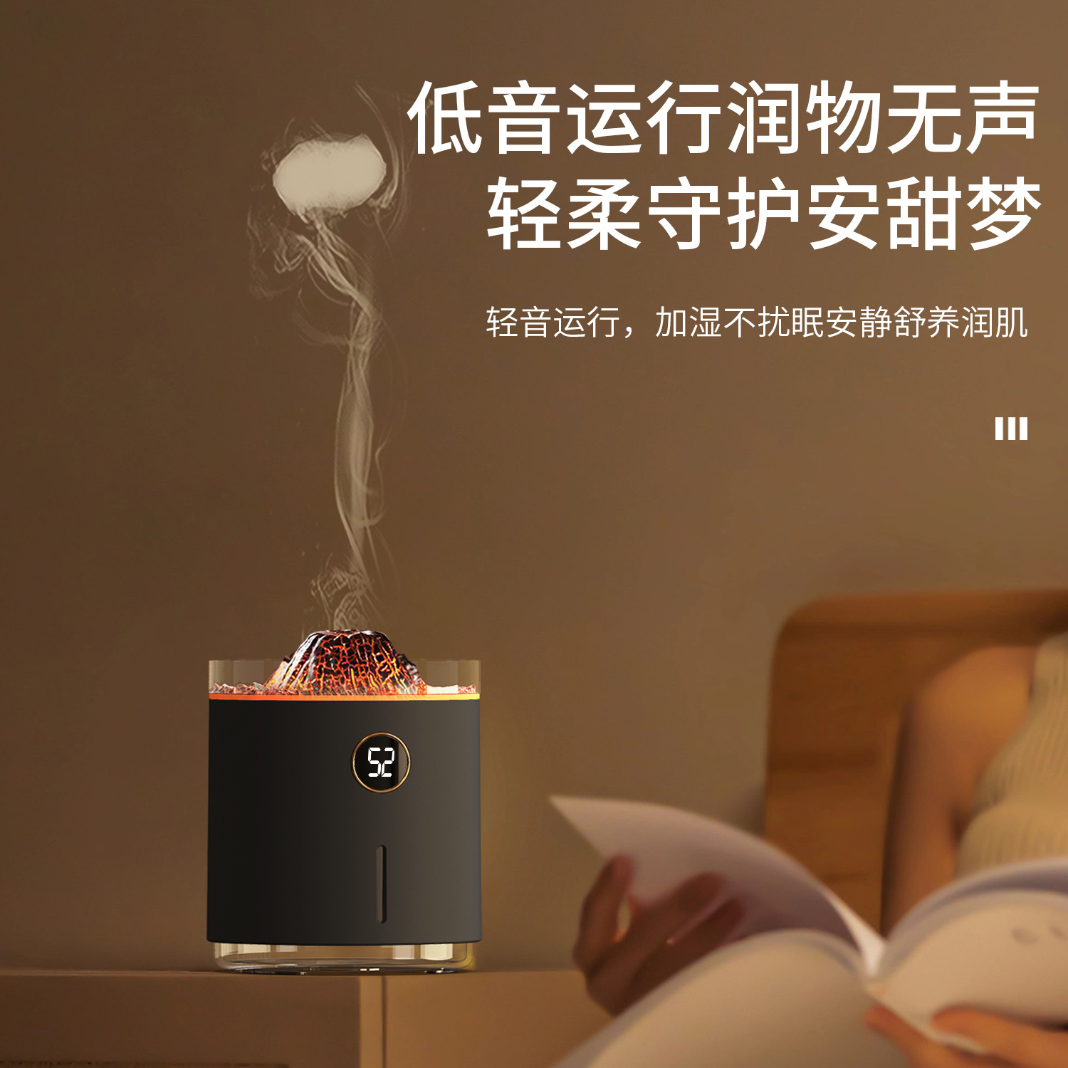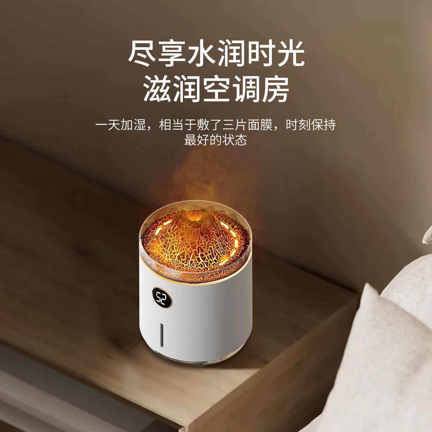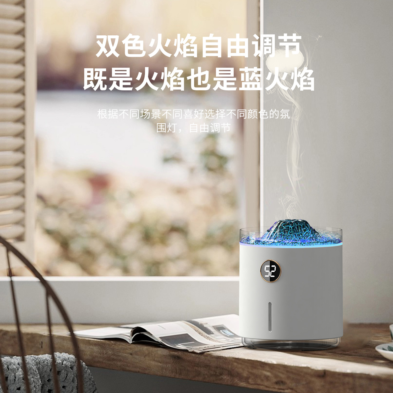 2023新款吐圈喷雾氛围火山香薰机家用卧室精油香氛机水母火焰加湿