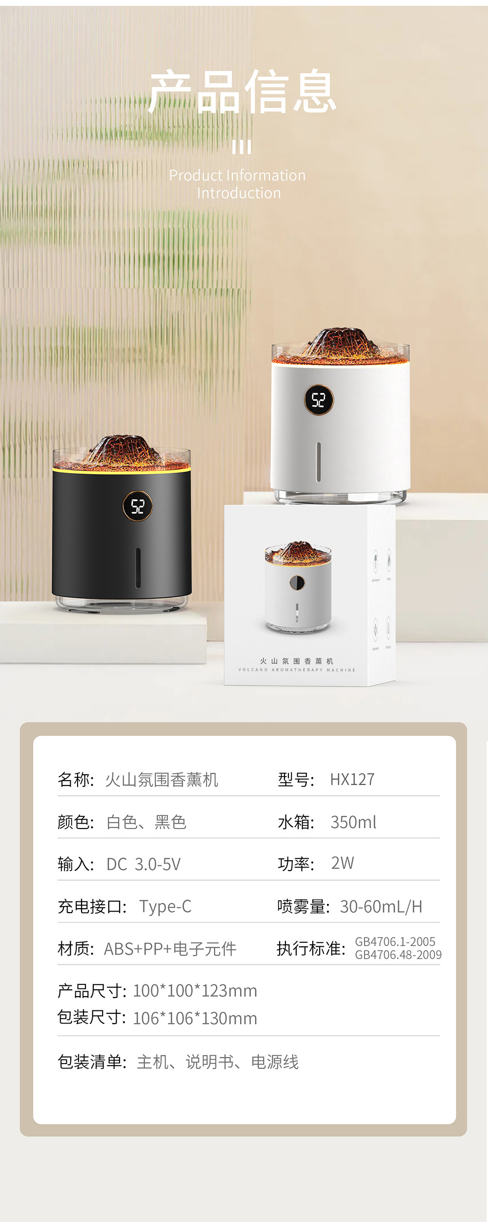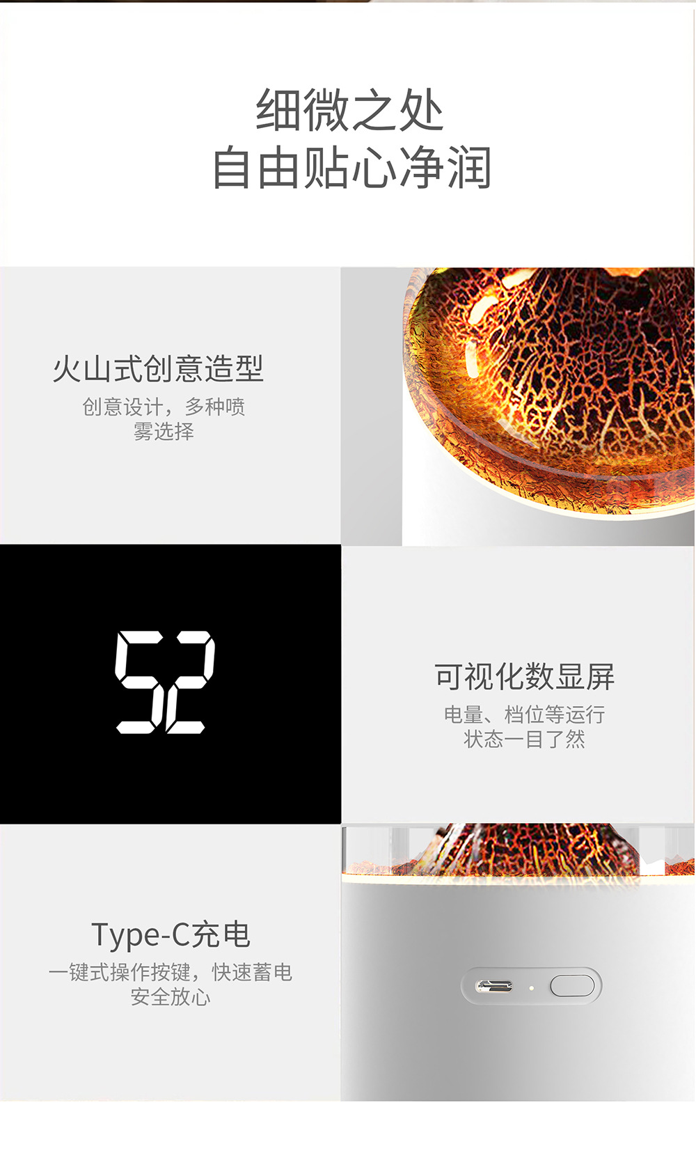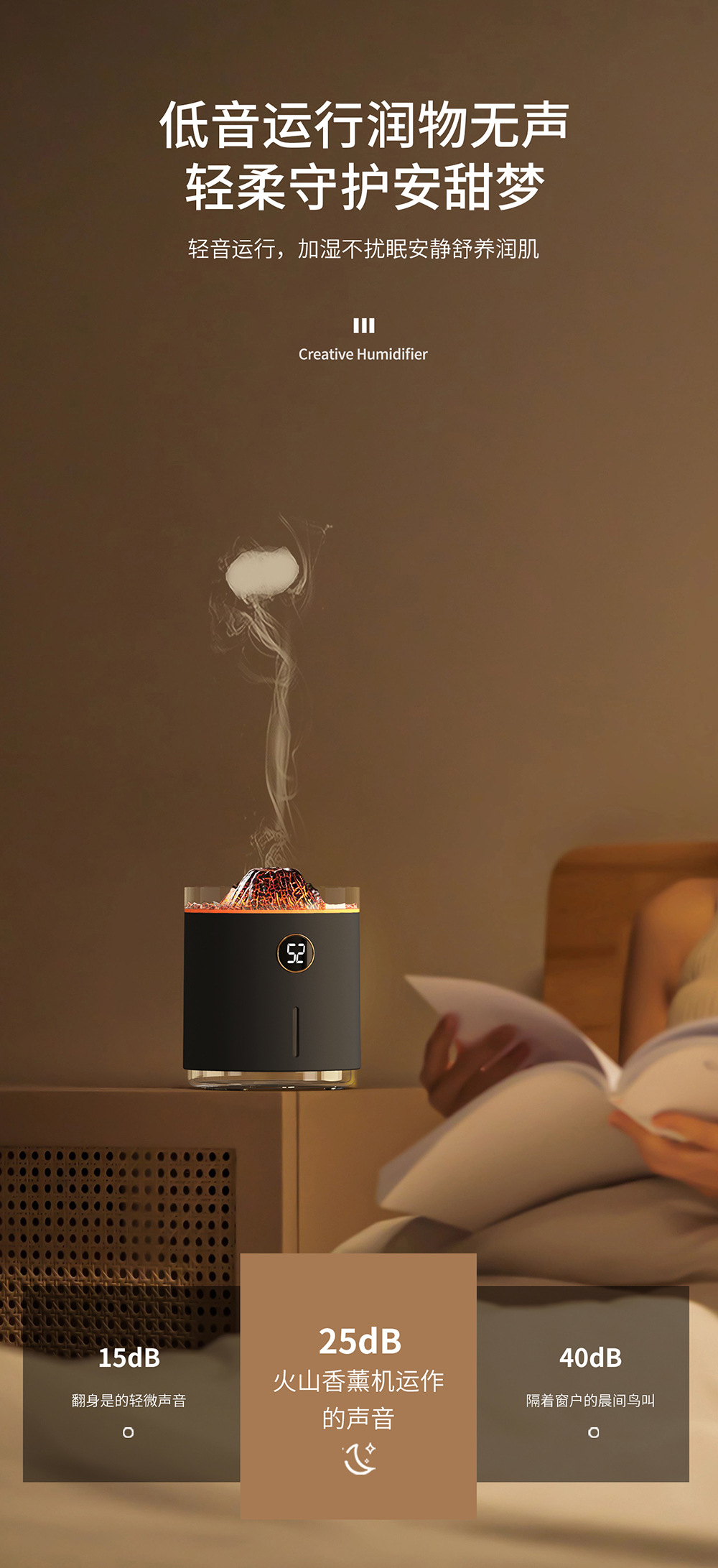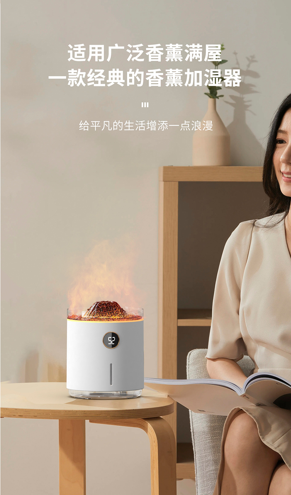 2023新款吐圈喷雾氛围火山香薰机家用卧室精油香氛机水母火焰加湿