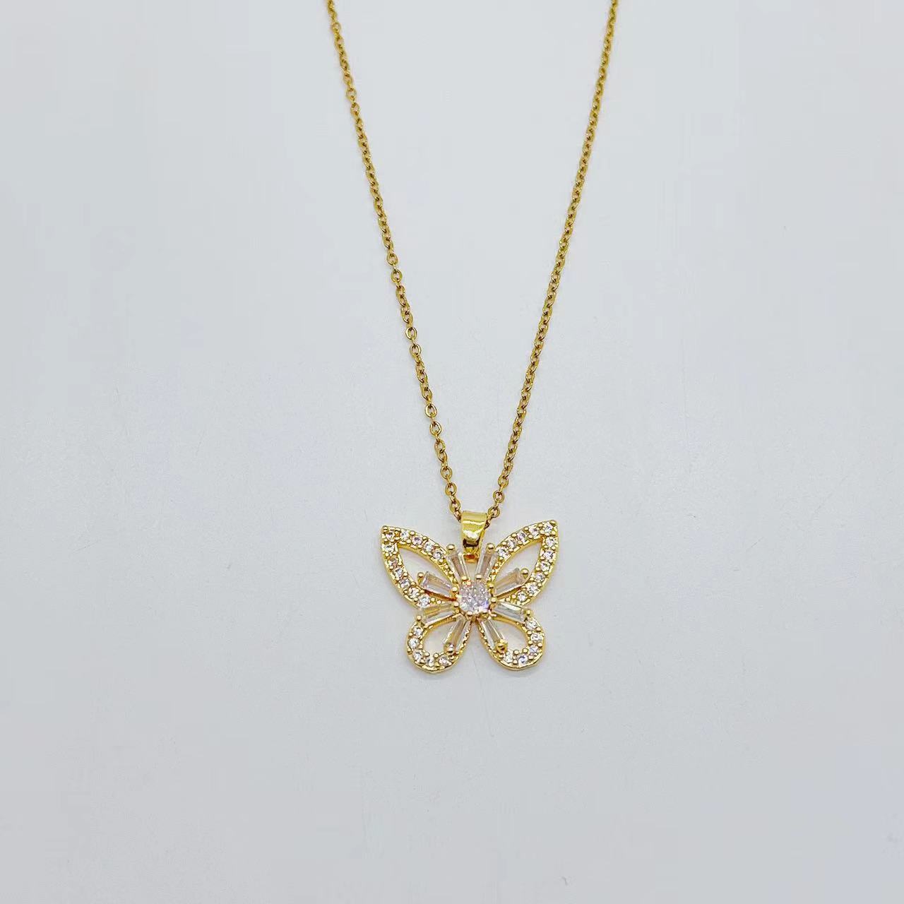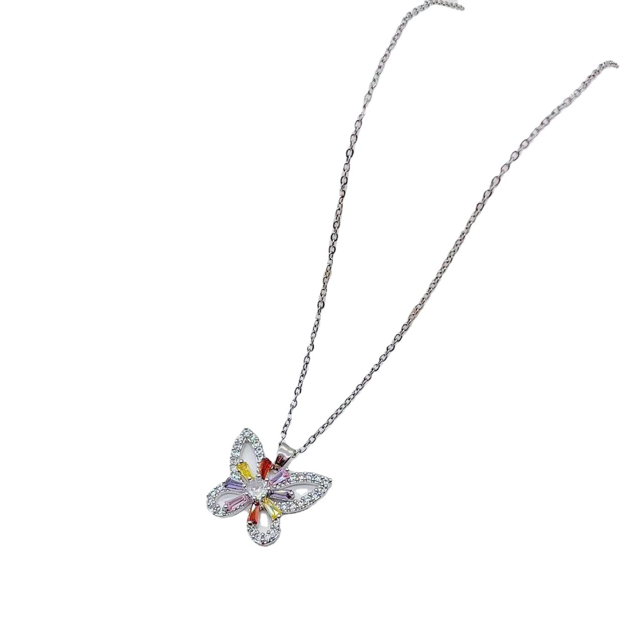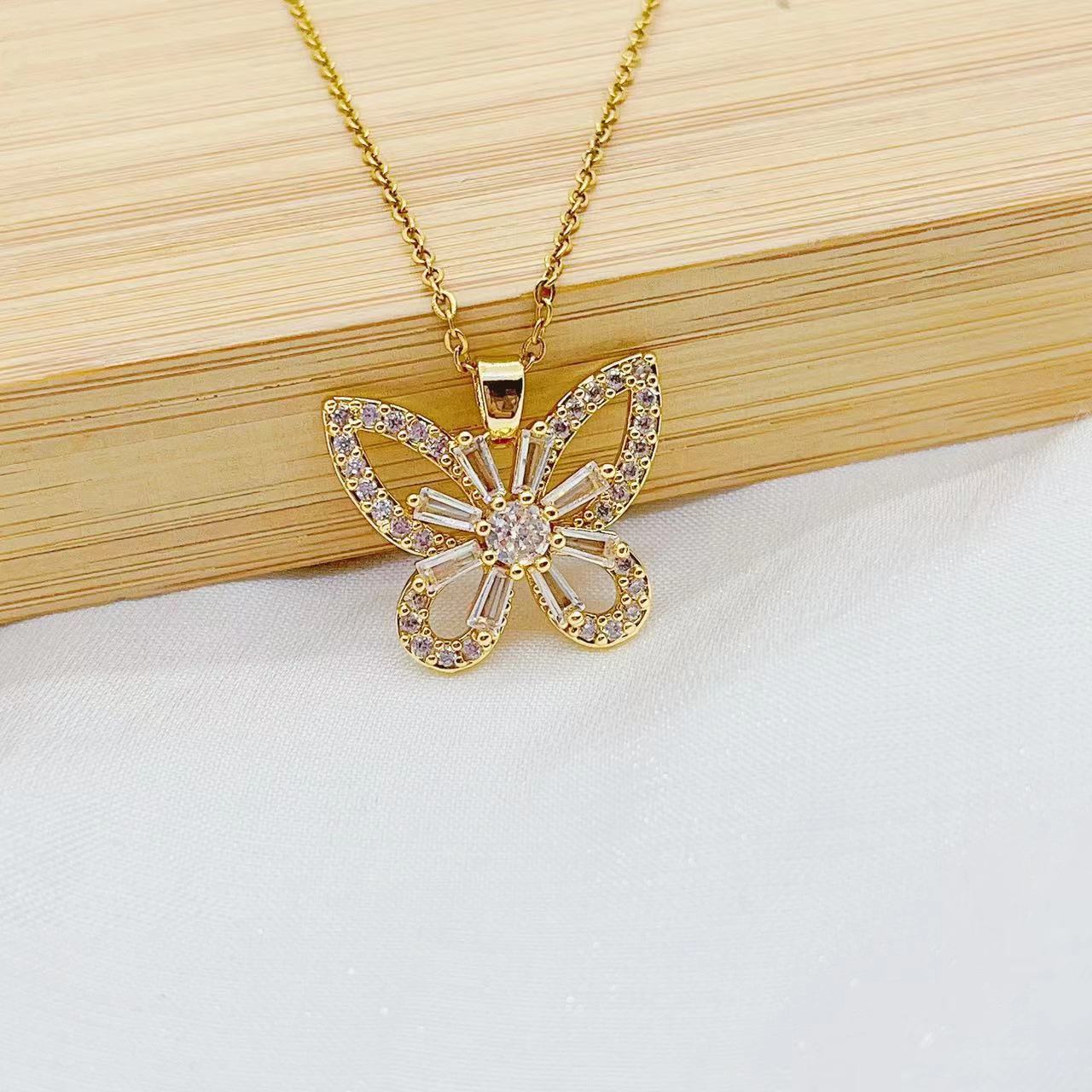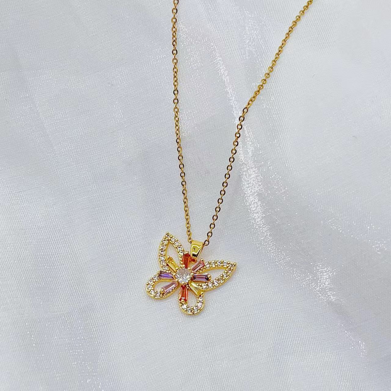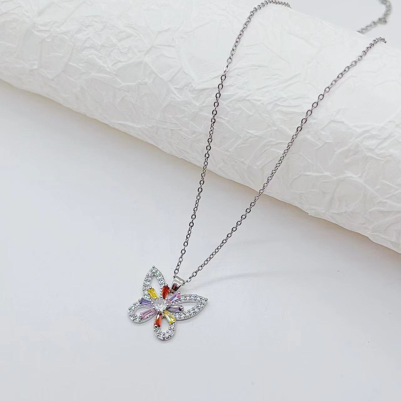 欧美跨境热销波西米亚铜锆石彩色梯方蝴蝶轻奢个性百搭锁骨链女
