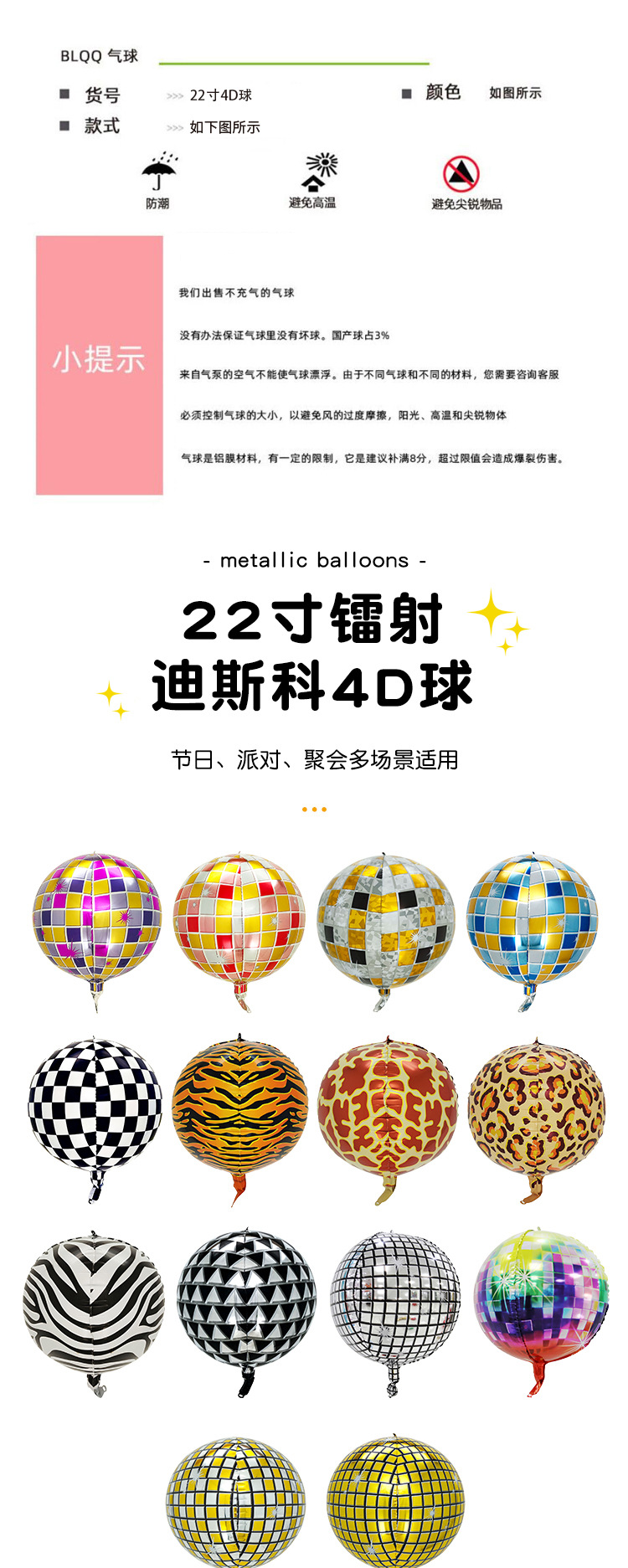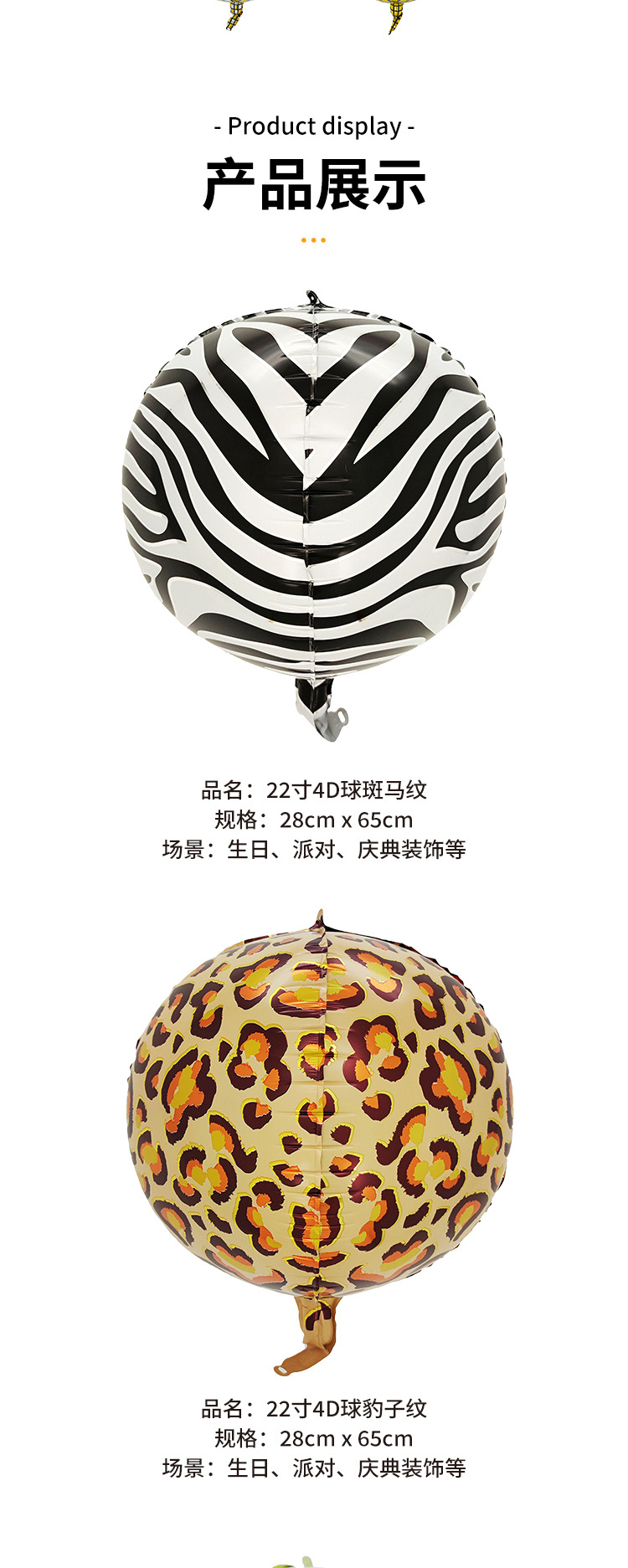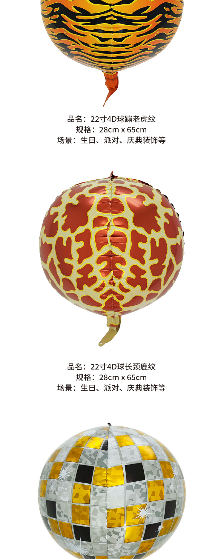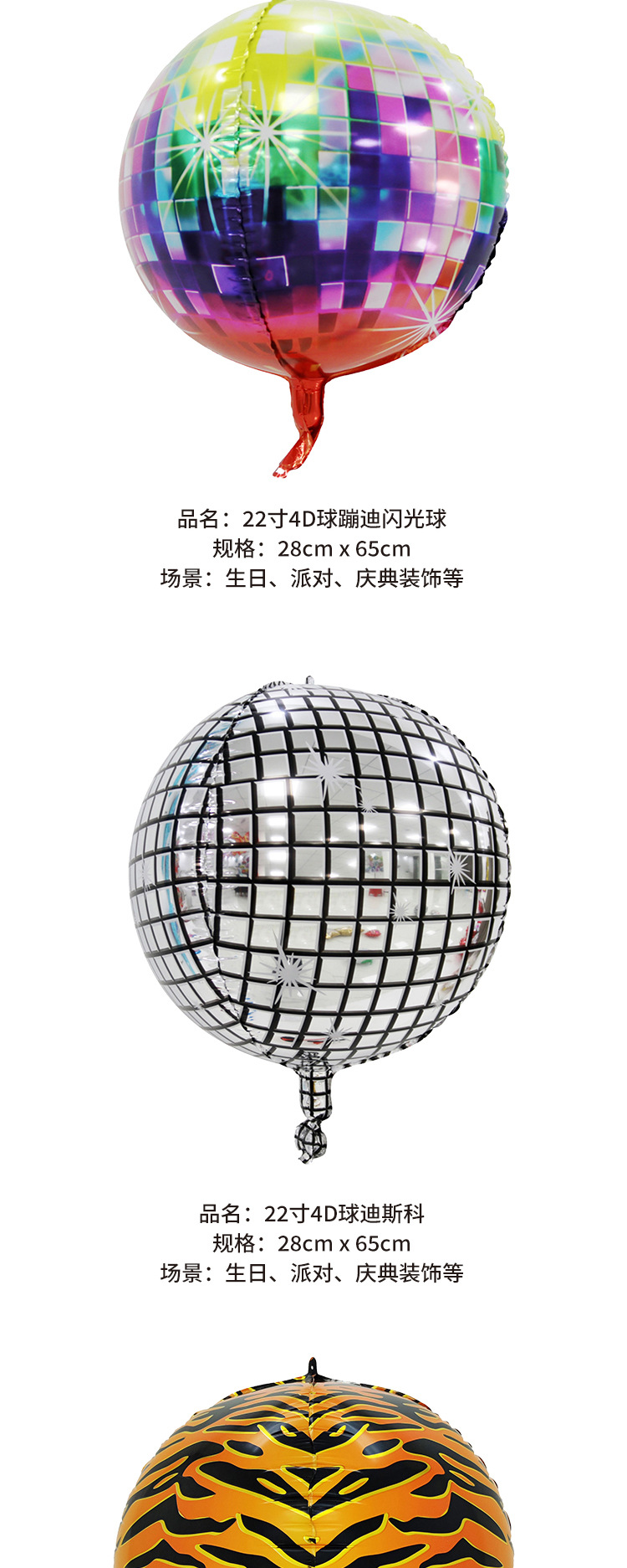 跨境22寸4D动物纹迪斯科立体气球生日派对布置地推摆摊铝膜气球