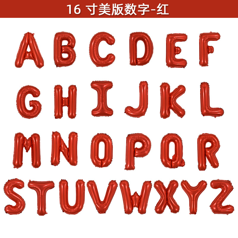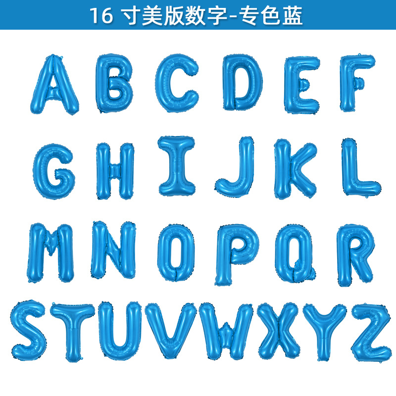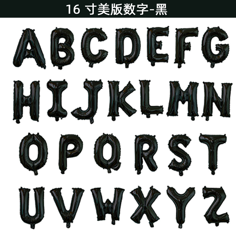 16寸瘦体字母数字铝膜气球生日儿童派对场景布置装饰气球厂家批发