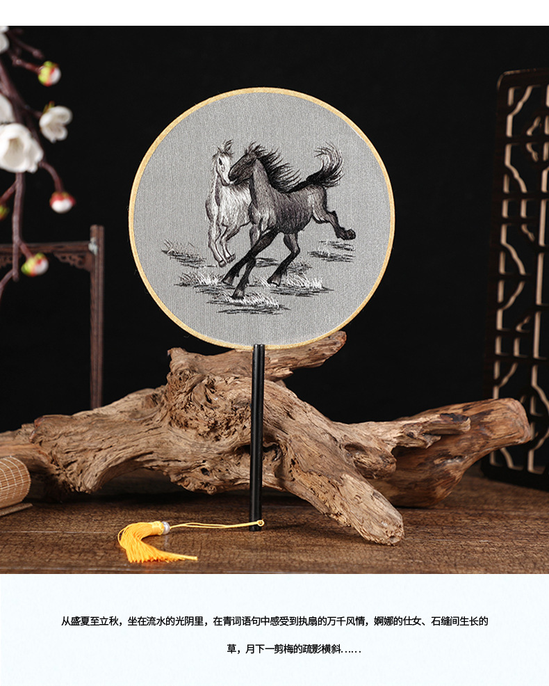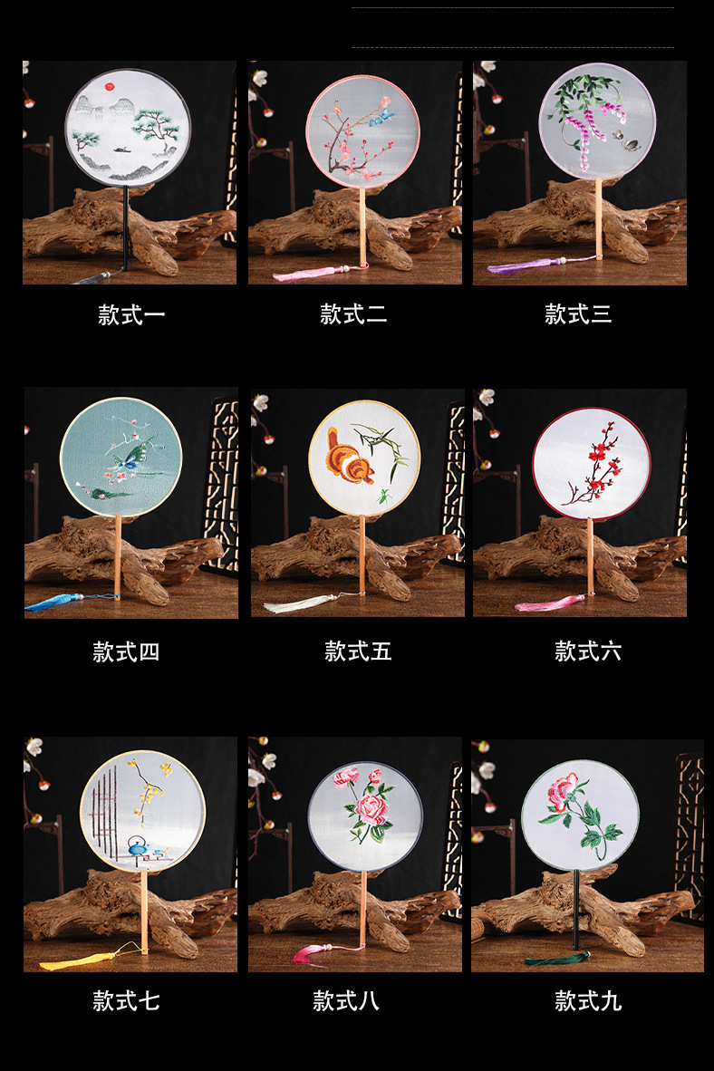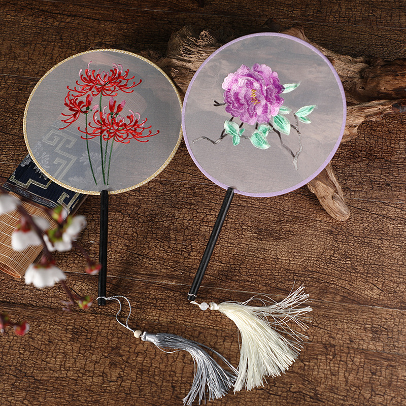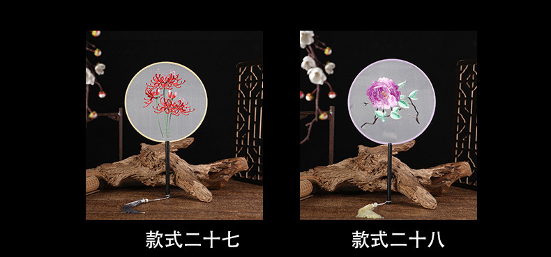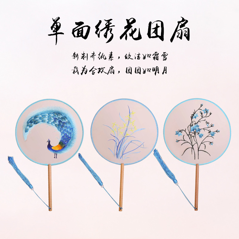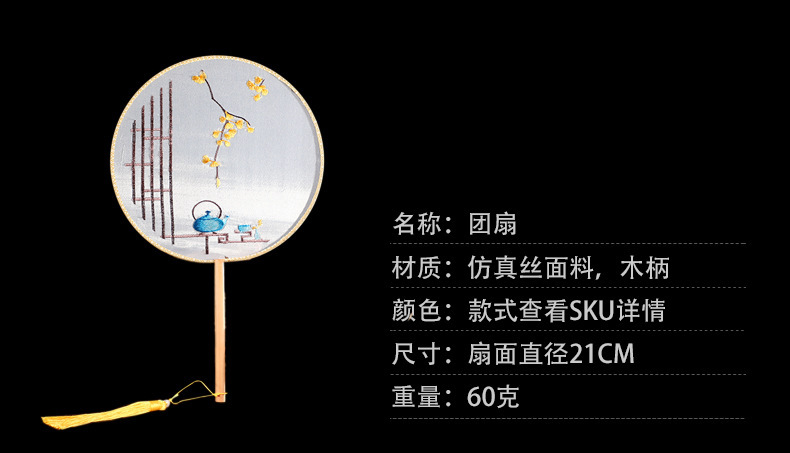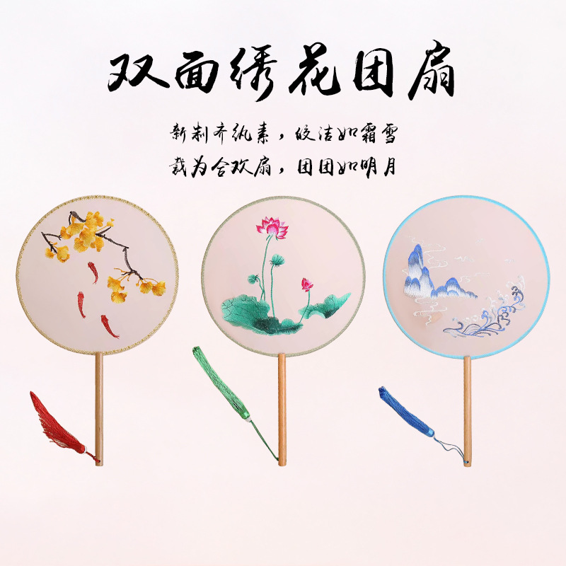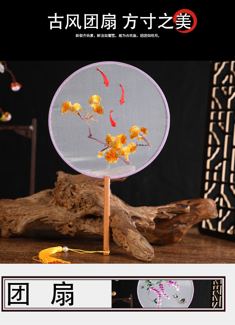 古典单双面绣花团扇中国风公主汉服宫扇古风舞蹈扇摄影道具绣花扇