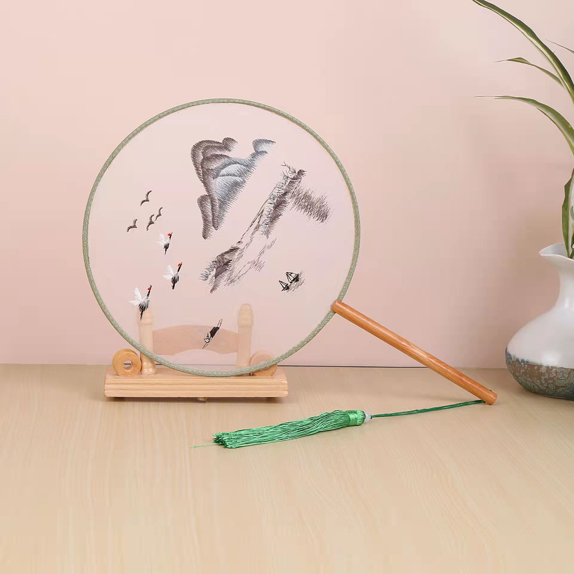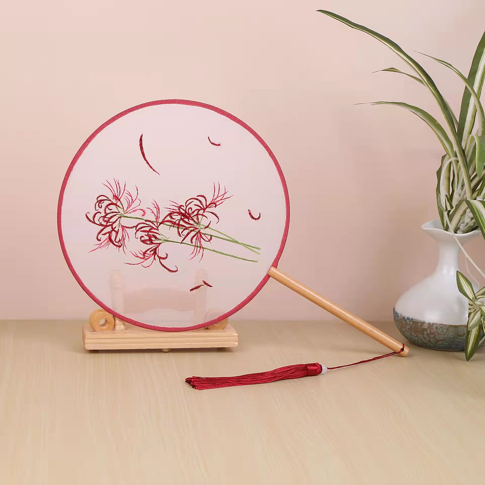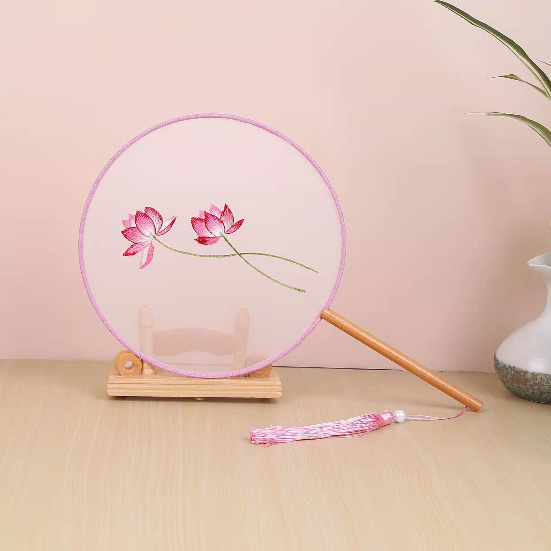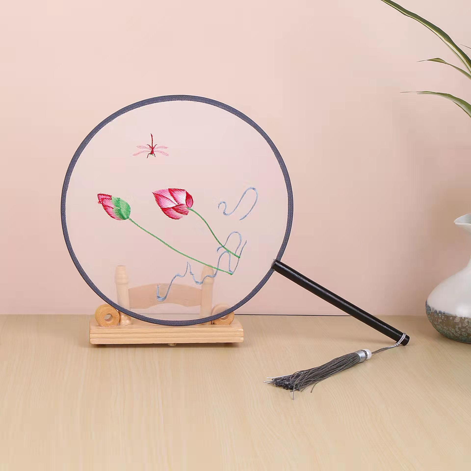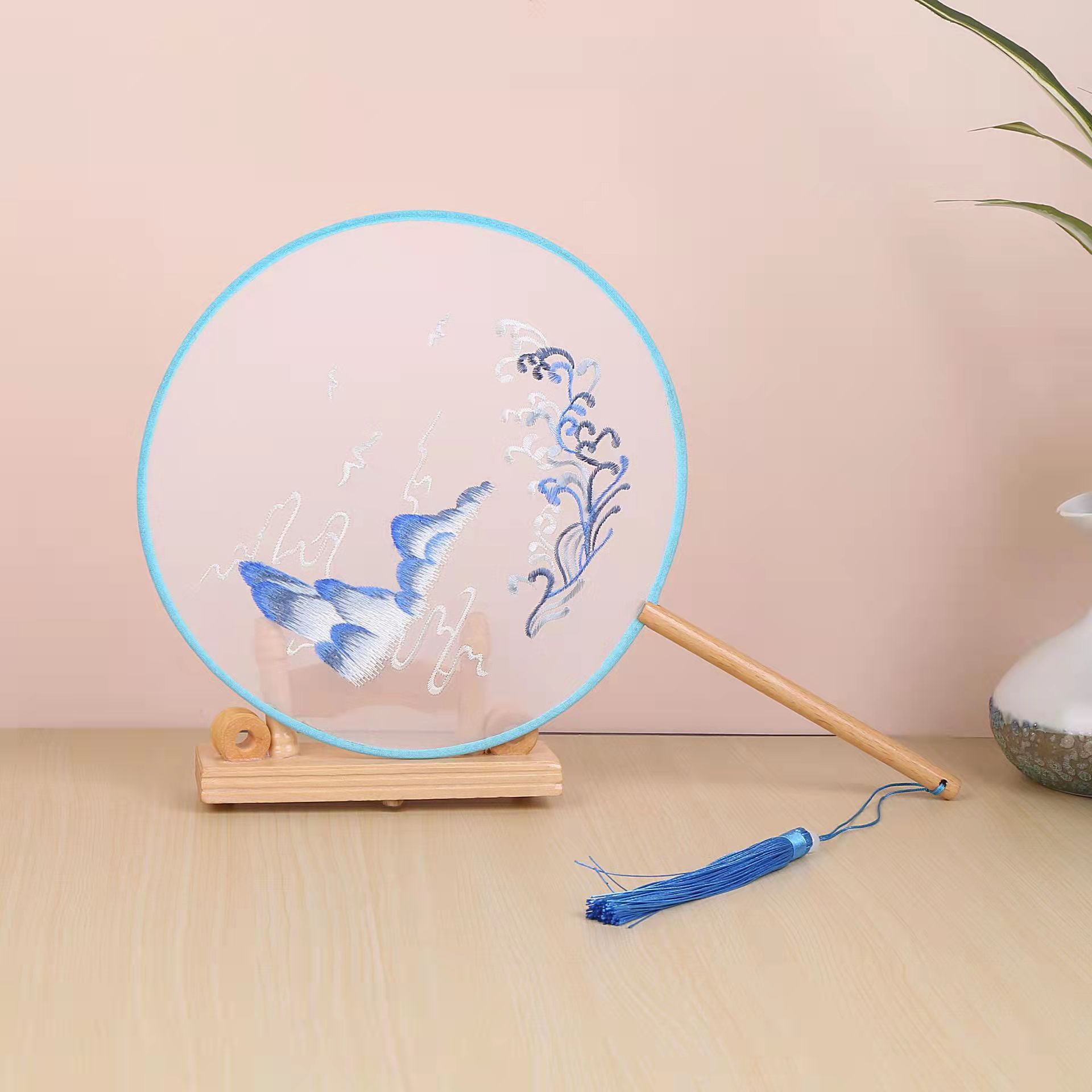 古典单双面绣花团扇中国风公主汉服宫扇古风舞蹈扇摄影道具绣花扇