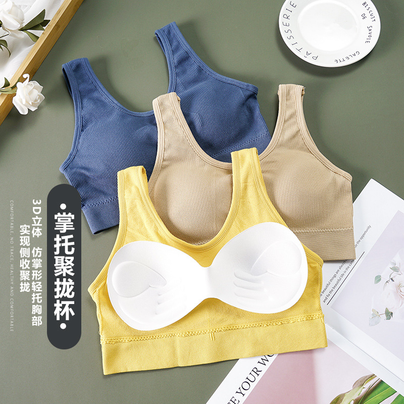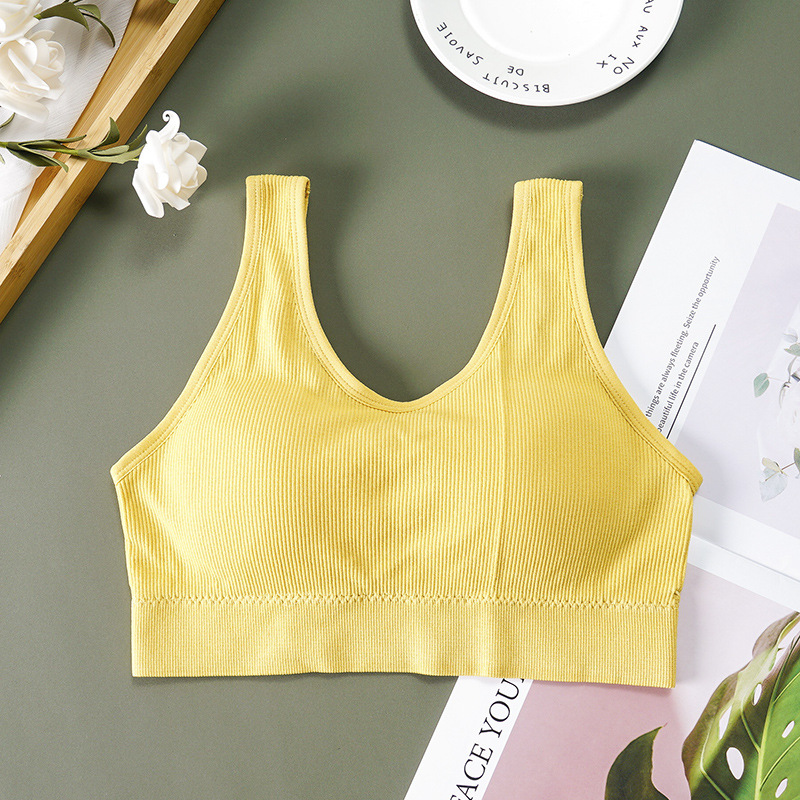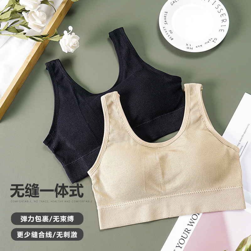 爆款螺纹吊带美背背心带胸垫裹胸运动瑜伽打底抹胸短款透气内衣女