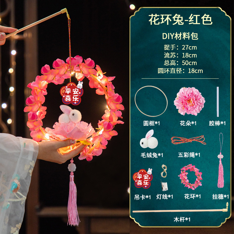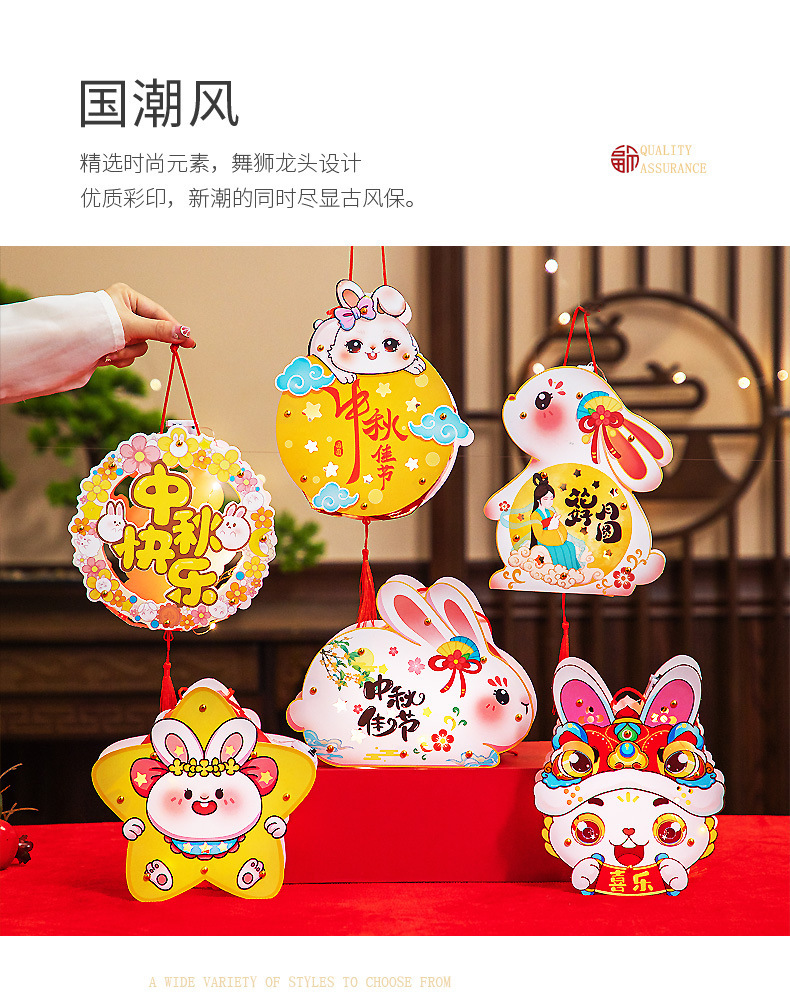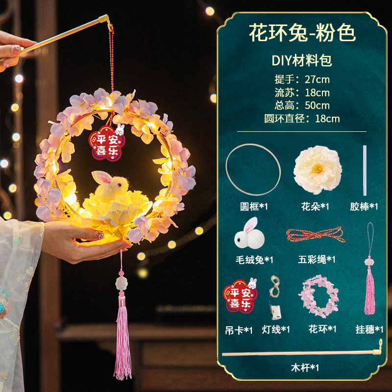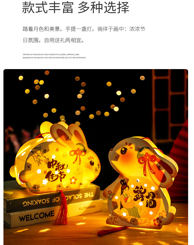 中秋节玉兔花灯手提发光手工自制diy小灯笼夜市摆摊玩具批发礼物