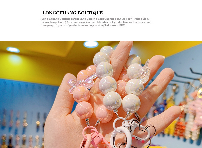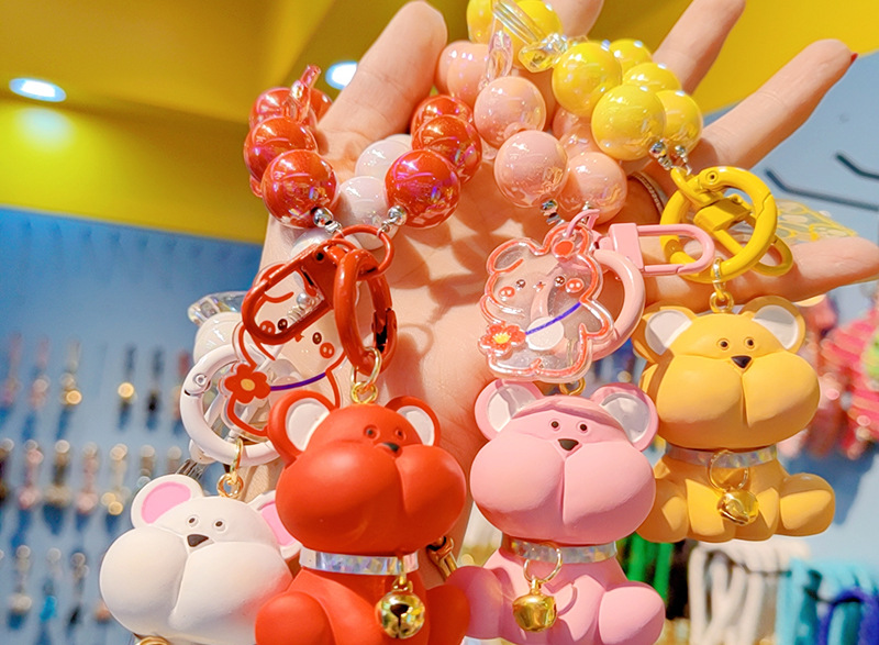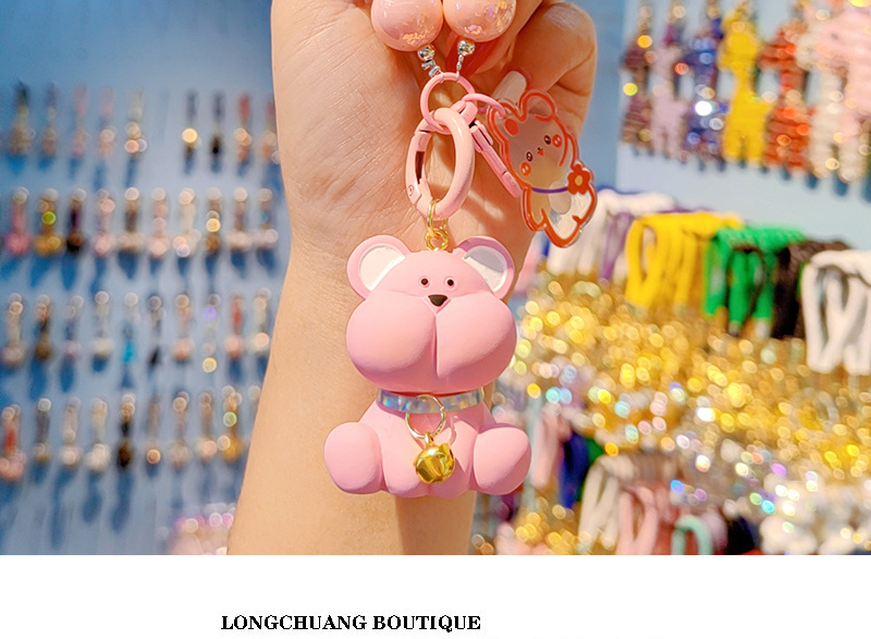 串珠嘟嘟熊汽车钥匙扣挂饰女可爱情侣钥匙链包包挂件卡通手机挂饰