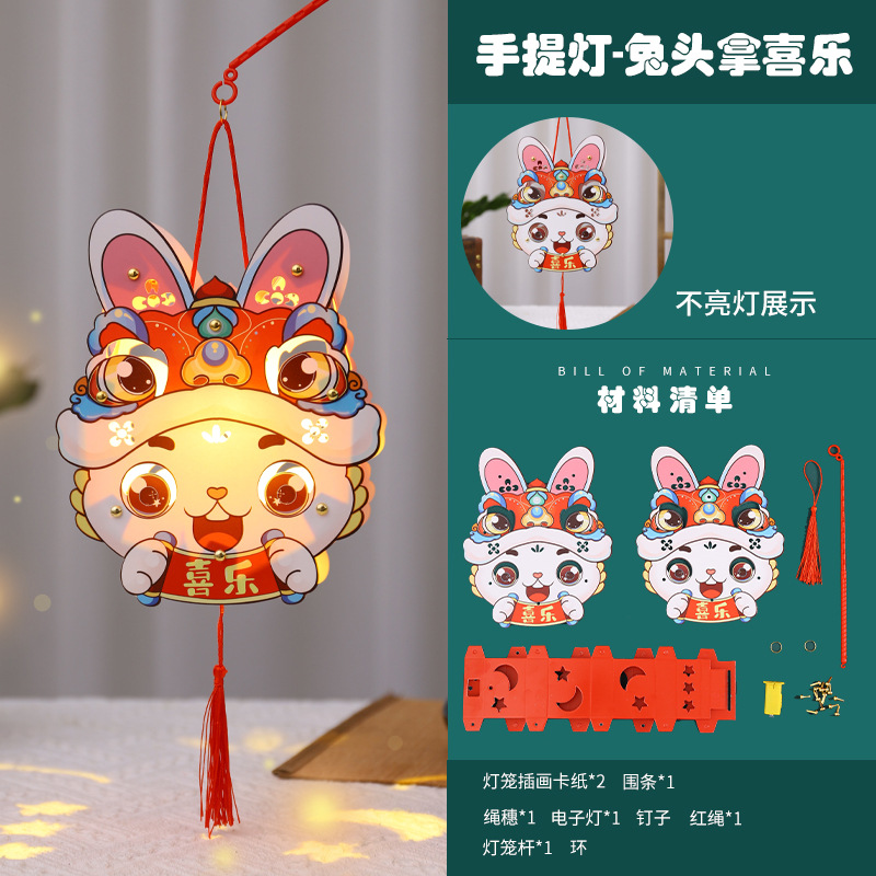 中秋节灯笼兔子灯笼中秋挂饰手提花灯宫灯儿童diy手工制作材料包
