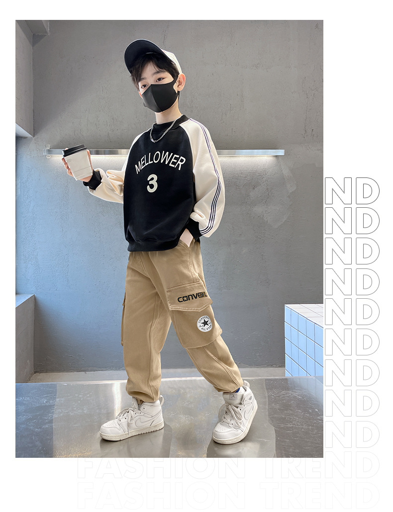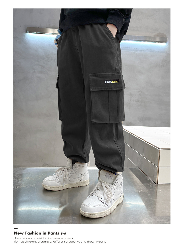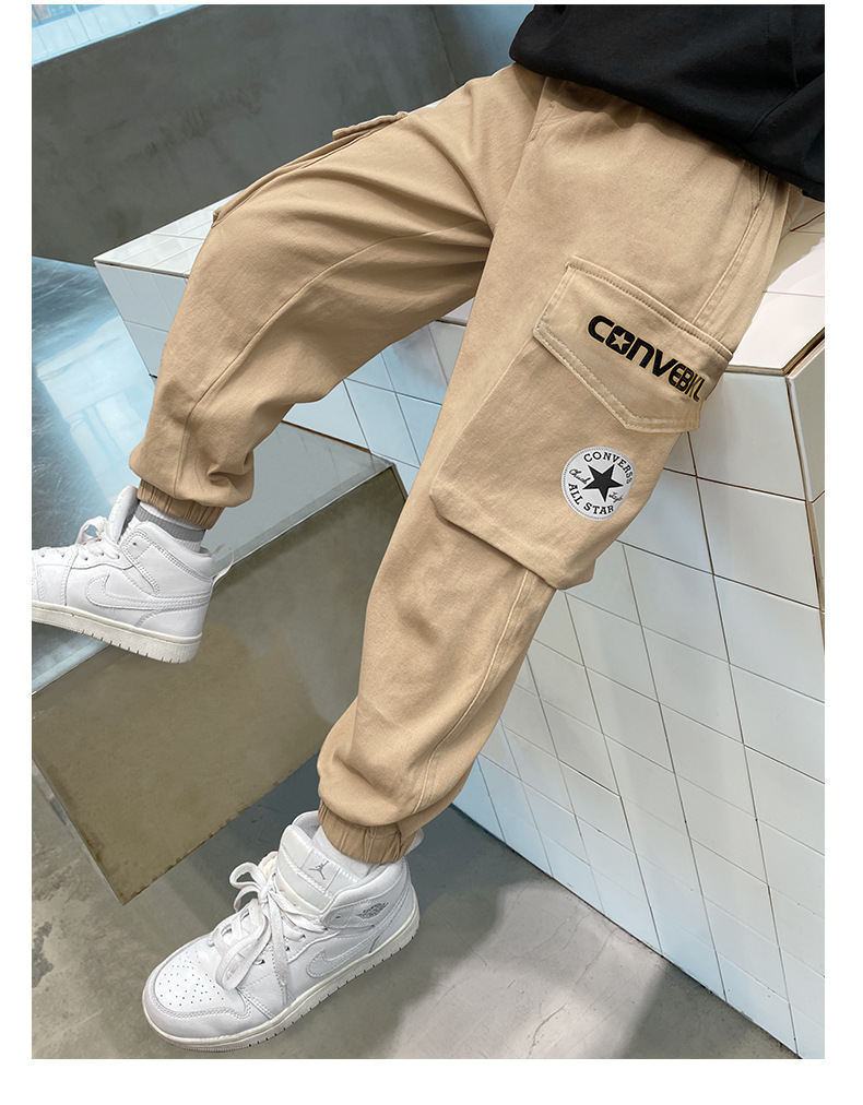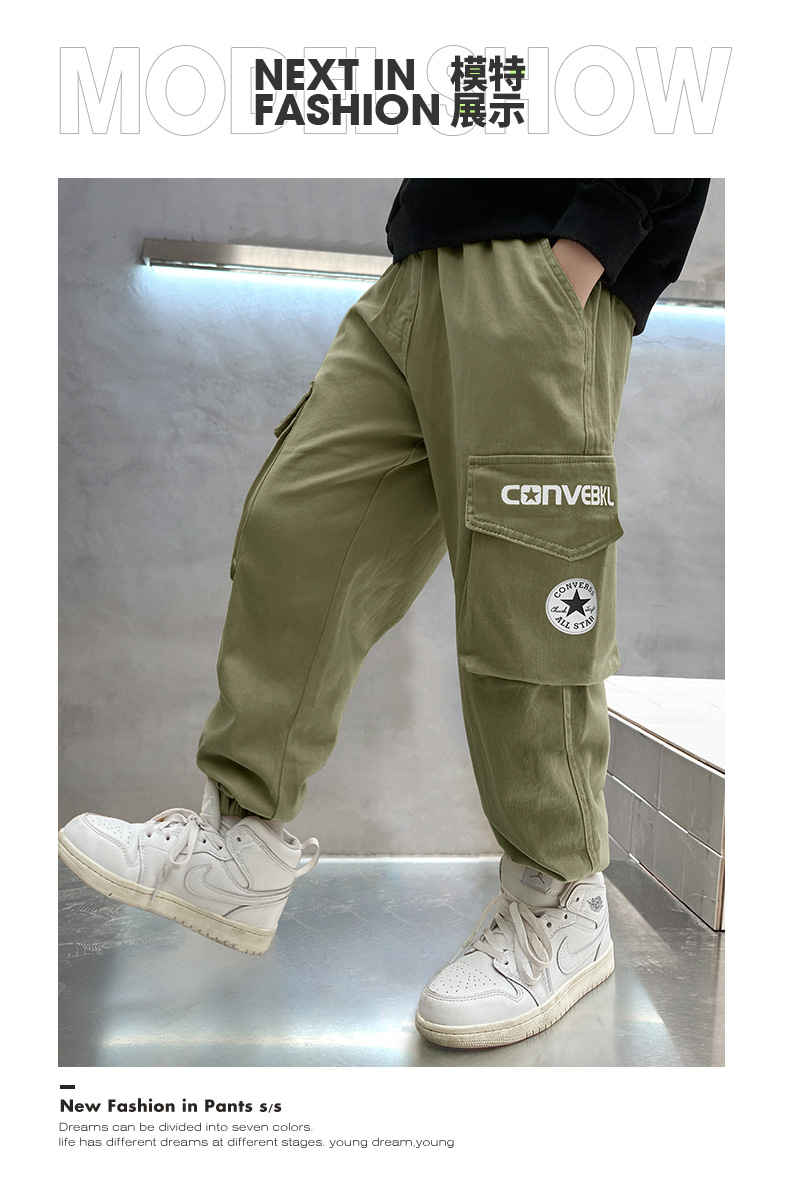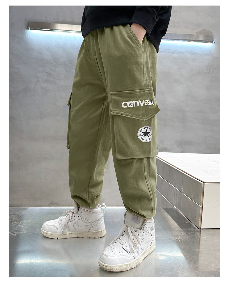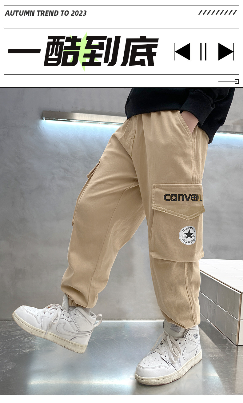 春秋款男童裤子2023新款纯棉束脚工装裤秋装长裤潮流大童童装批发