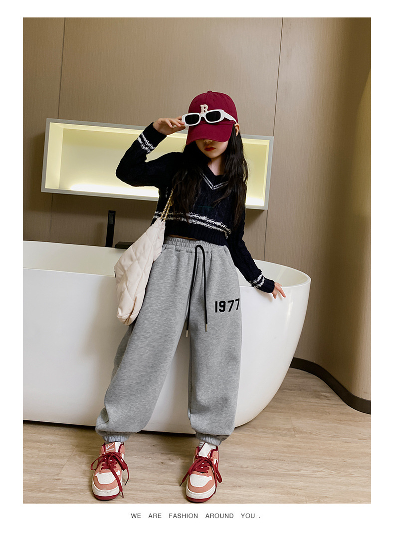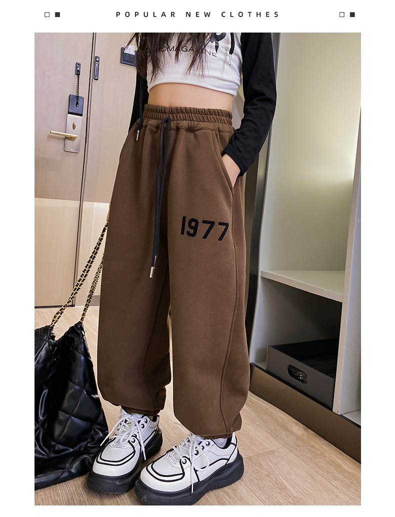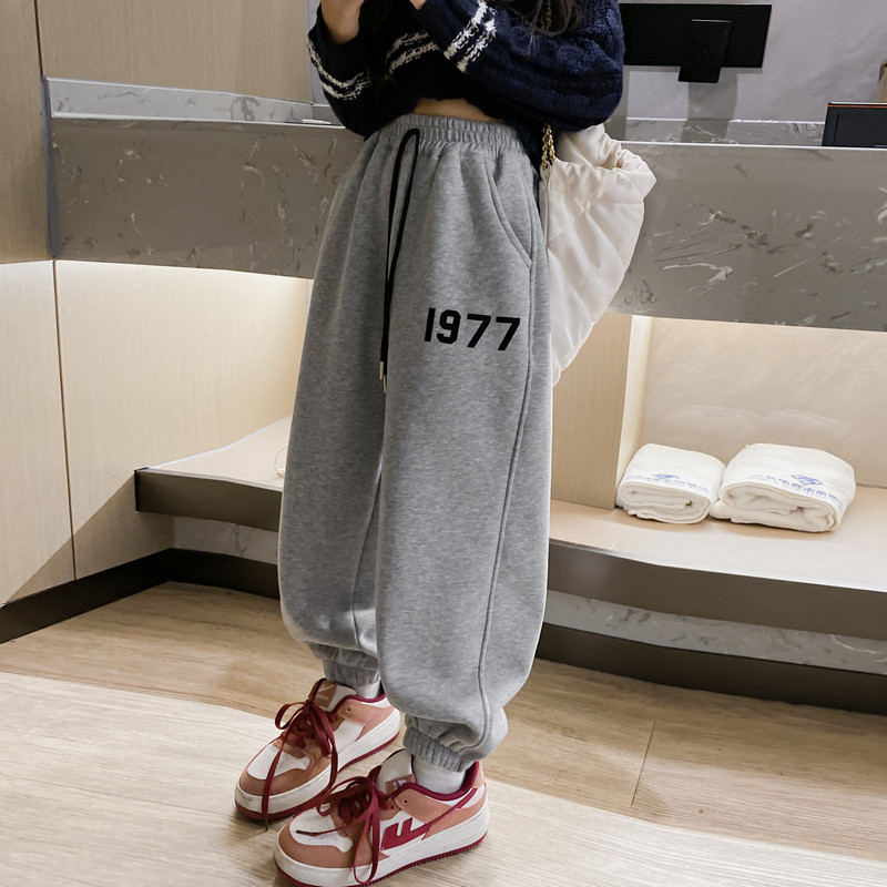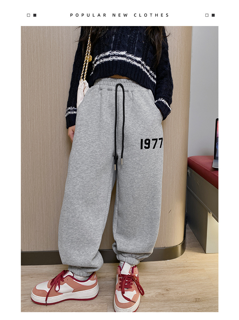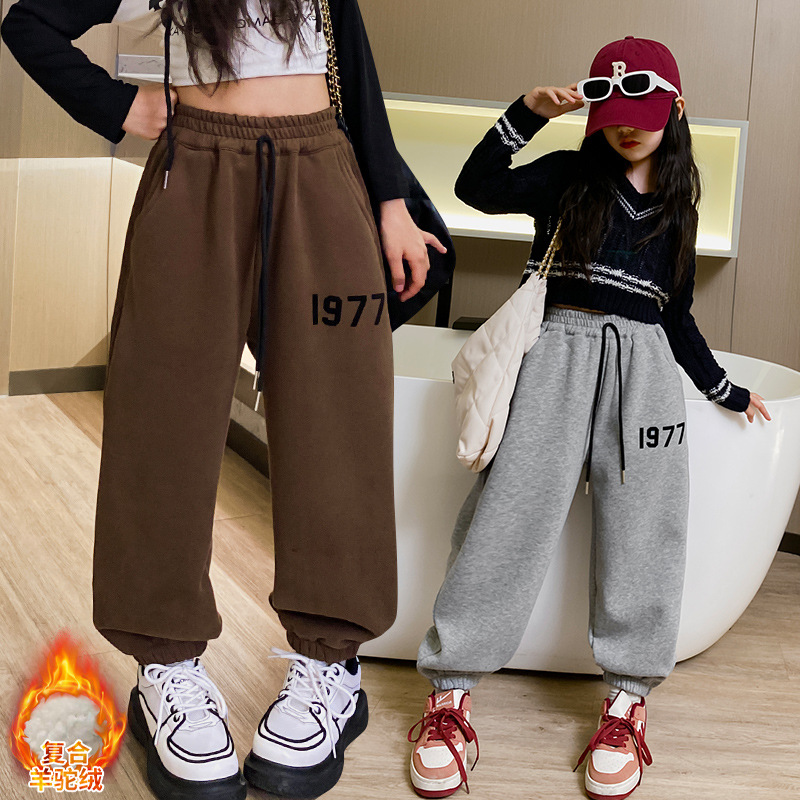 女童裤子秋冬加绒款2023新款洋气女大童卫裤儿童深秋超柔绒运动裤