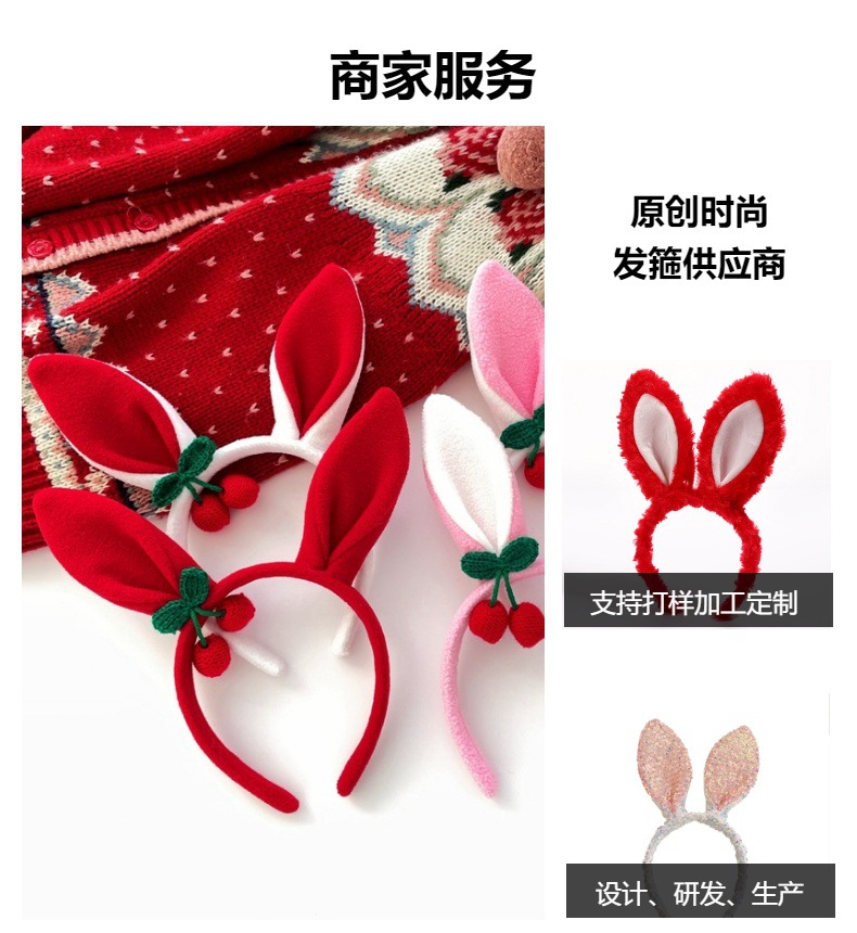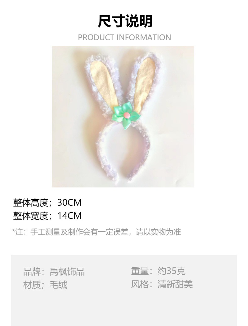 星黛露毛绒兔耳朵发箍网红拍照节日派对成人儿童发饰发卡洗脸发箍