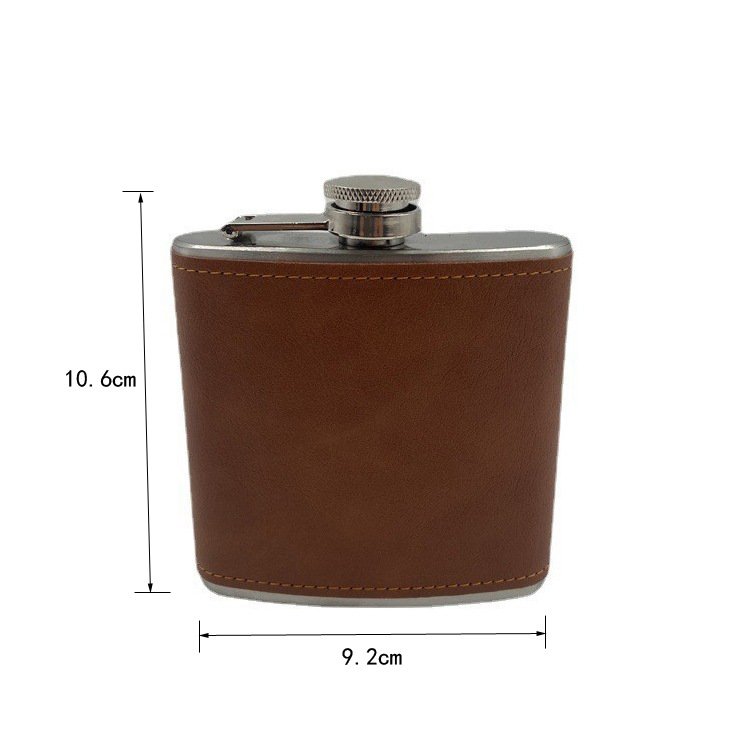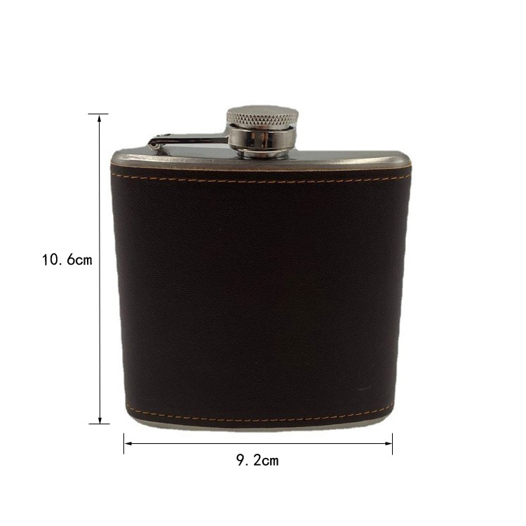 厂家直销俄罗斯小酒壶户外随身便携6盎司棕皮酒瓶批发不锈钢酒壶