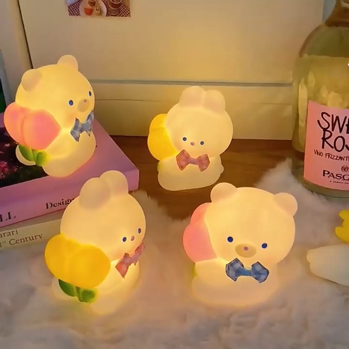 床头小夜灯甜美萌趣护眼睡觉灯卧室睡眠灯电池款呆萌蜜桃小熊台灯