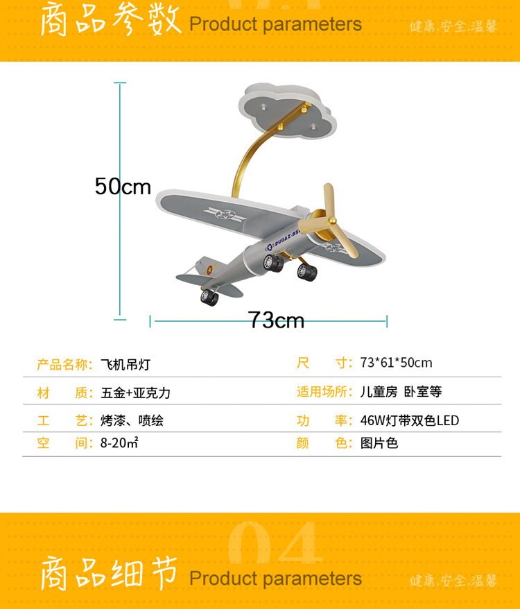 外贸专供led儿童飞机灯男孩 房间灯个性简约卡通造型吊灯灯具