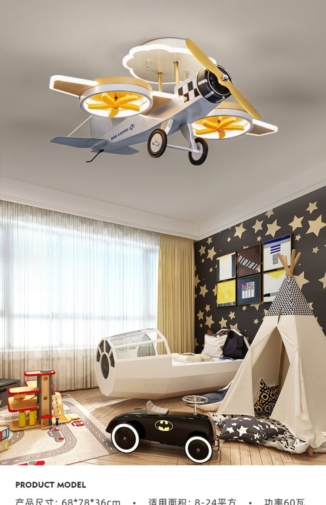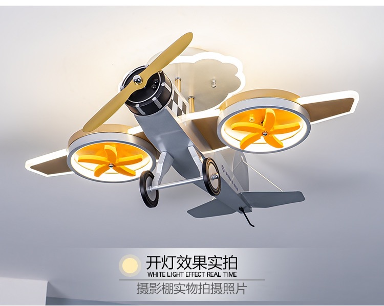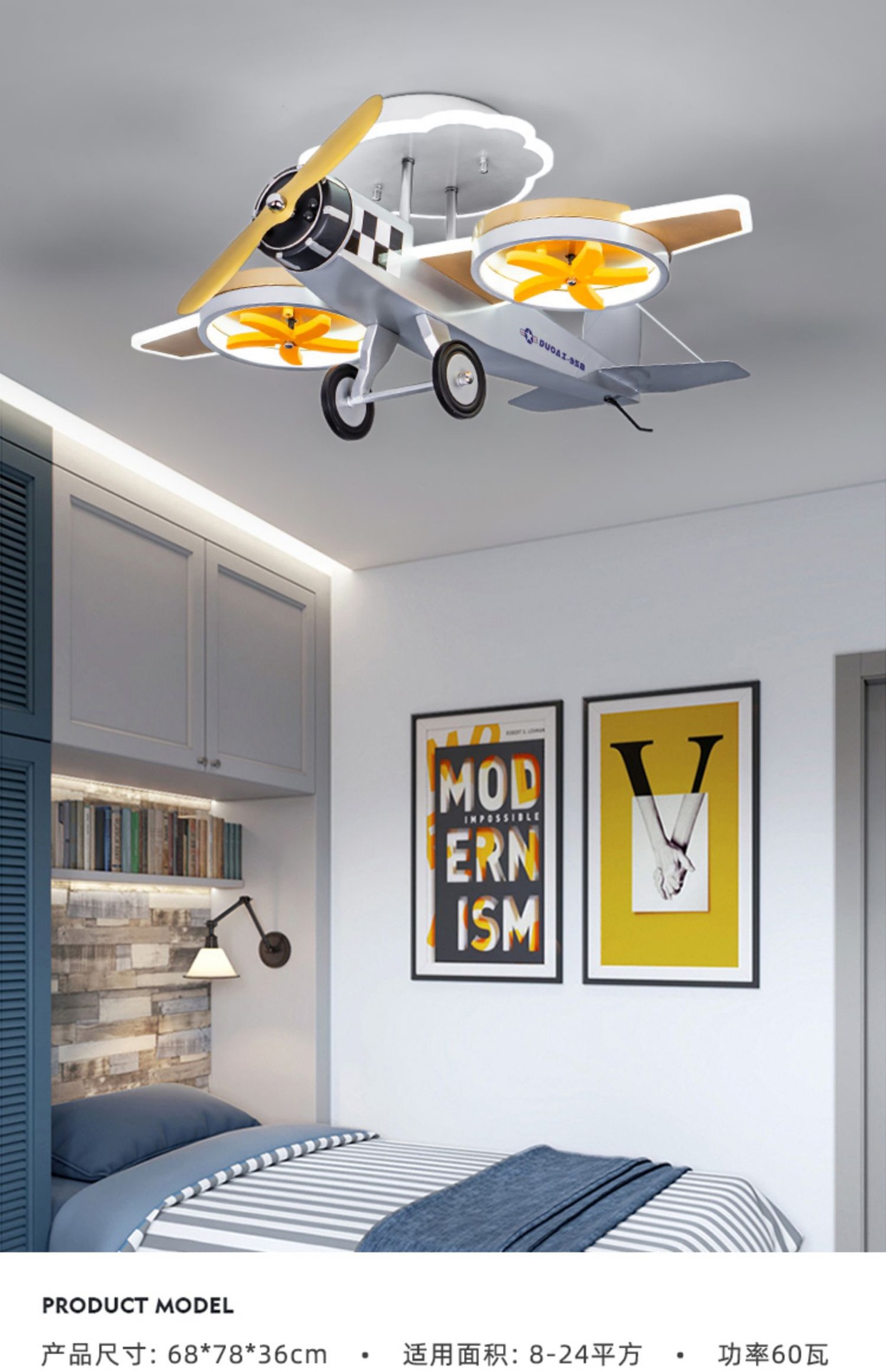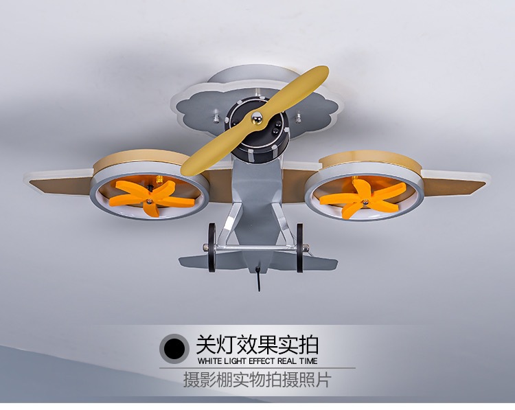 外贸专供全光谱男孩飞机风扇电风扇吊扇形状战机儿童房吸顶吊灯