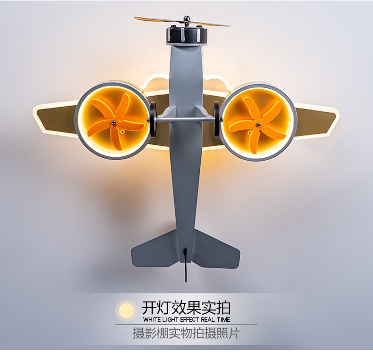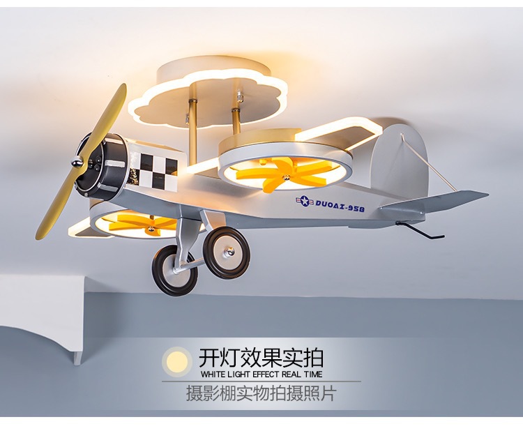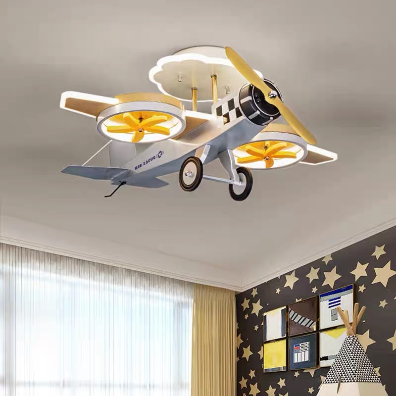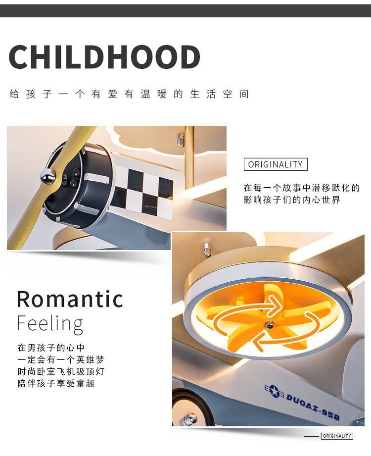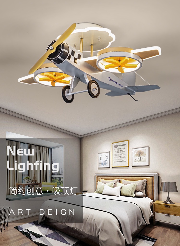 外贸专供全光谱男孩飞机风扇电风扇吊扇形状战机儿童房吸顶吊灯